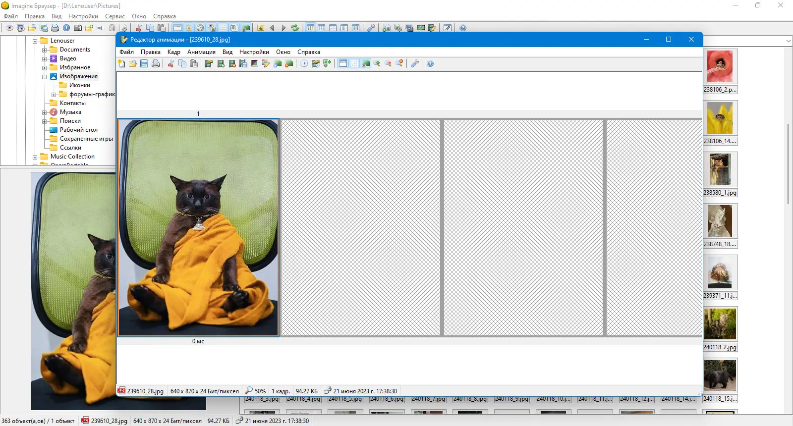 - Возможность извлечения отдельных кадров из анимированных GIF и других анимационных форматов