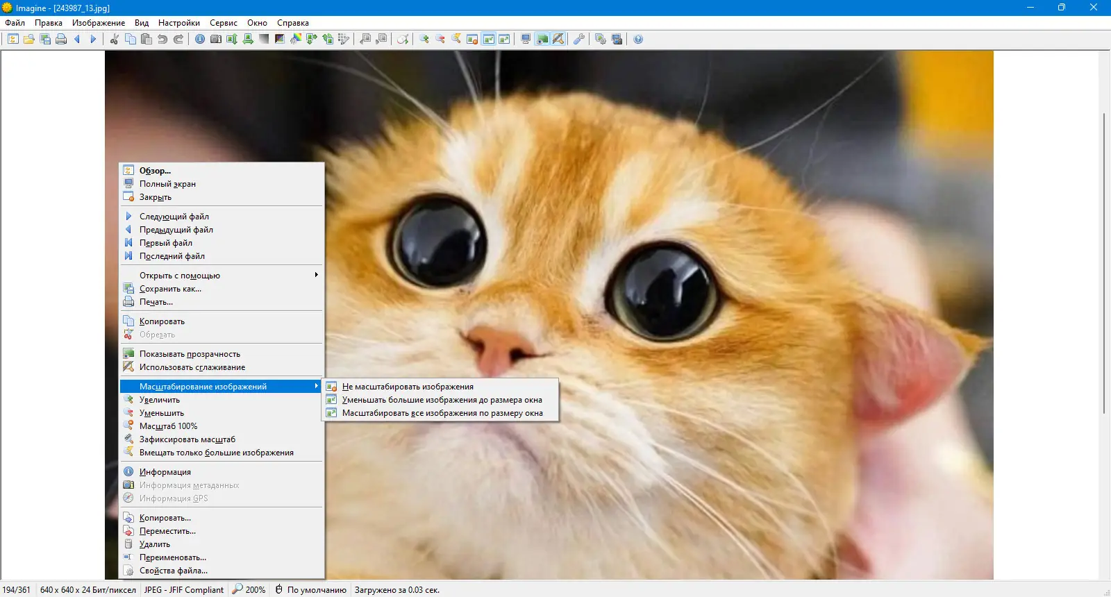 Использование Imagine не требует специальных навыков. Достаточно запустить исполняемый файл, открыть изображение через проводник или перетащить его в окно программы. Навигация по файлам осуществляется с помощью клавиш со стрелками, колеса мыши или полноценного браузера миниатюр. Программа поддерживает полноэкранный режим, слайд-шоу с настраиваемыми интервалами и захват экрана. Дополнительно доступны пакетное переименование, конвертация и создание многостраничных TIFF-документов.