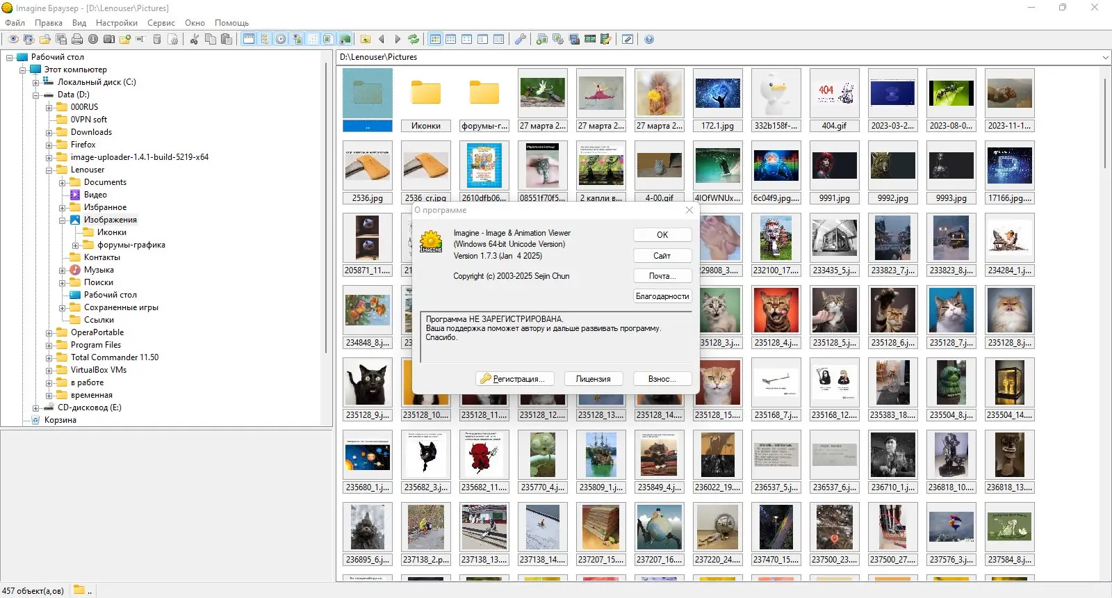 Imagine — это легковесный и мощный просмотрщик изображений для операционных систем Windows, совмещающий высокую скорость работы, поддержку множества форматов и расширенные функции обработки графики. Программа поддерживает не только стандартные растровые и анимированные форматы, но также RAW-файлы цифровых камер, архивы и изображения высокого динамического диапазона. Благодаря минимальному потреблению ресурсов и отсутствию записи в реестр, Imagine идеально подходит как для повседневного использования, так и для работы на устаревших или слабых компьютерах.