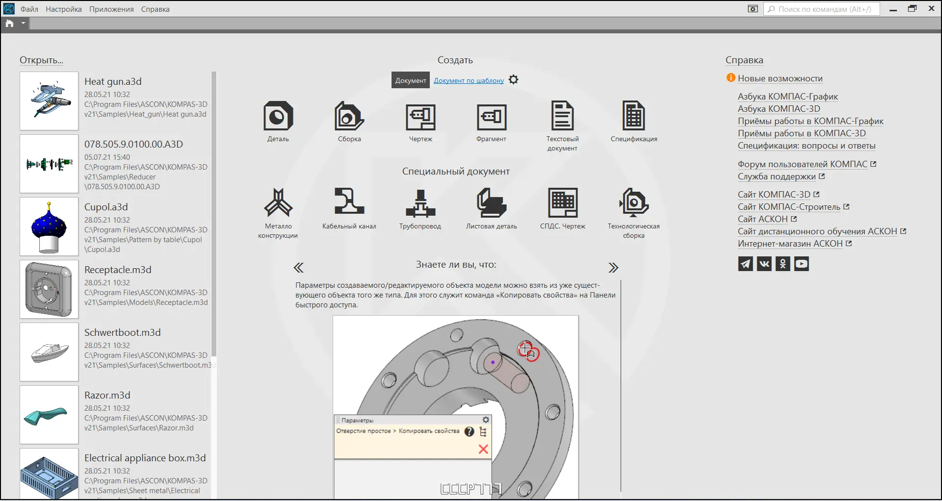 Интерфейс программы интуитивно понятен и адаптирован под стандарты российского проектирования, что ускоряет процесс освоения. Начинающий пользователь может быстро приступить к созданию эскизов, используя встроенные шаблоны и примеры. Параметрические зависимости позволяют задавать размеры и ограничения, после чего система автоматически корректирует форму при изменении параметров. Для работы с крупными сборками реализованы механизмы частичной загрузки компонентов и использование слоёв, что значительно повышает производительность. Все изменения в 3D-модели ассоциативно отражаются в чертежах и спецификациях, что исключает ошибки при оформлении документации. Встроенная система КОМПАС-График позволяет выпускать чертежи, схемы и таблицы в соответствии с требованиями ГОСТ. Поддержка Unicode обеспечивает корректное отображение текста на разных языках, включая кириллицу и латиницу.