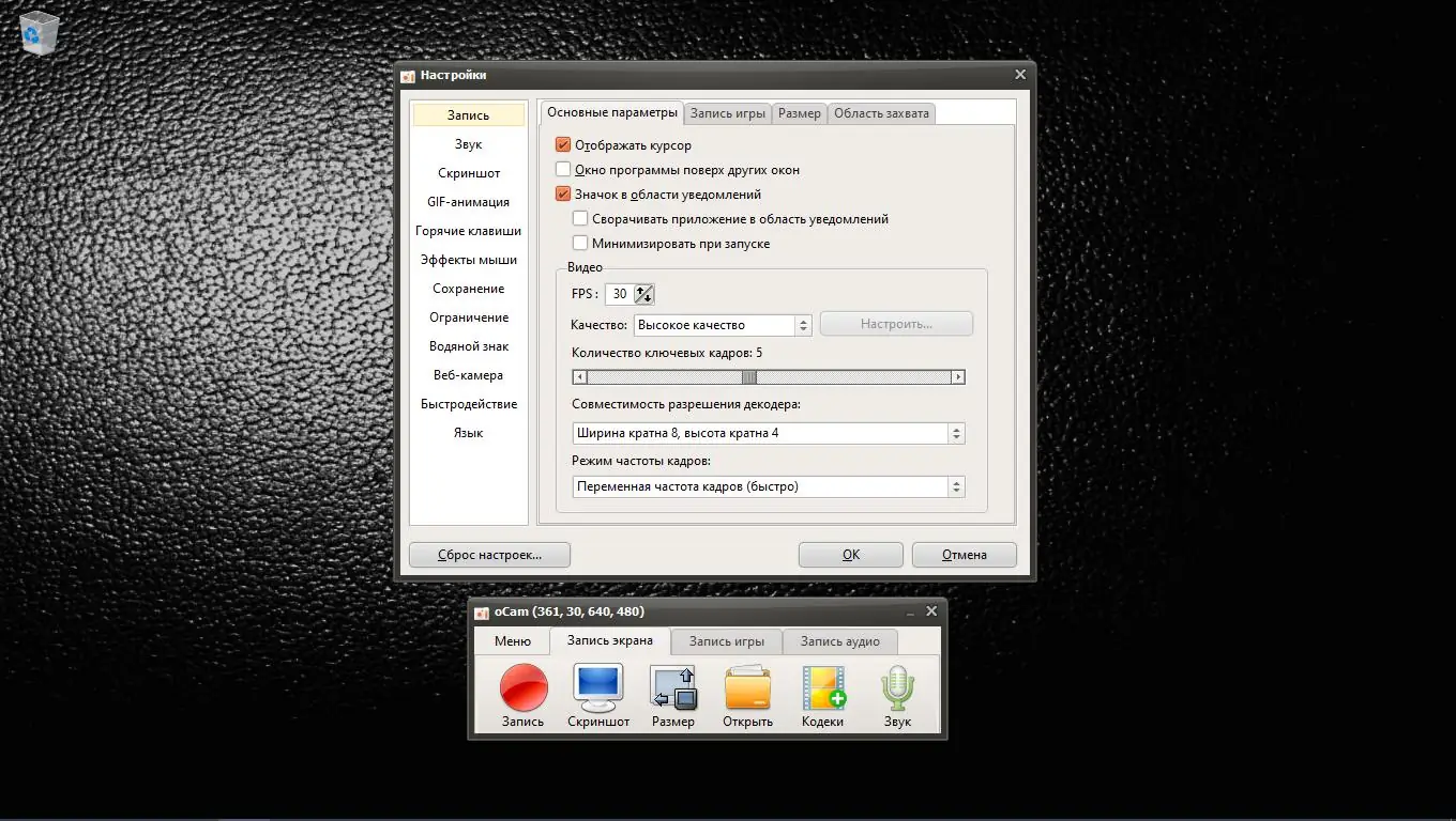 Особое внимание в oCam уделено качеству и стабильности записи, особенно при фиксации игрового процесса и воспроизведении мультимедиа