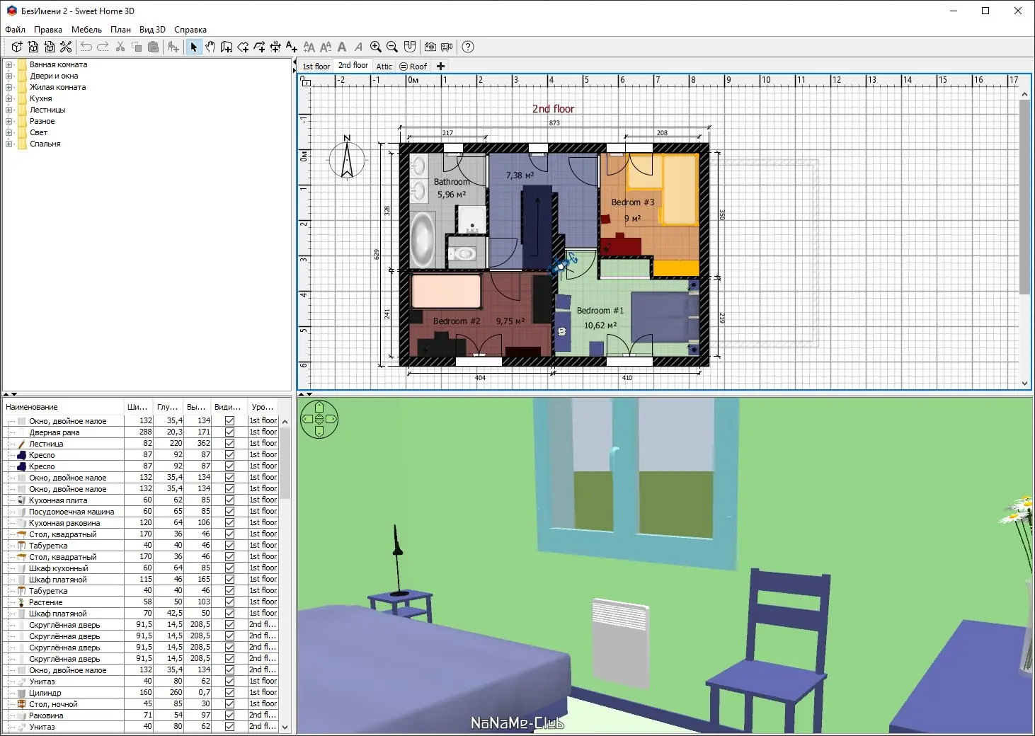 Sweet Home 3D — это программа для проектирования интерьеров и создания планов жилых помещений с возможностью визуализации в 2D и 3D. Приложение позволяет разрабатывать архитектурные проекты любой сложности, подбирая мебель, материалы и освещение. Программа доступна для использования бесплатно и поддерживает русский интерфейс.