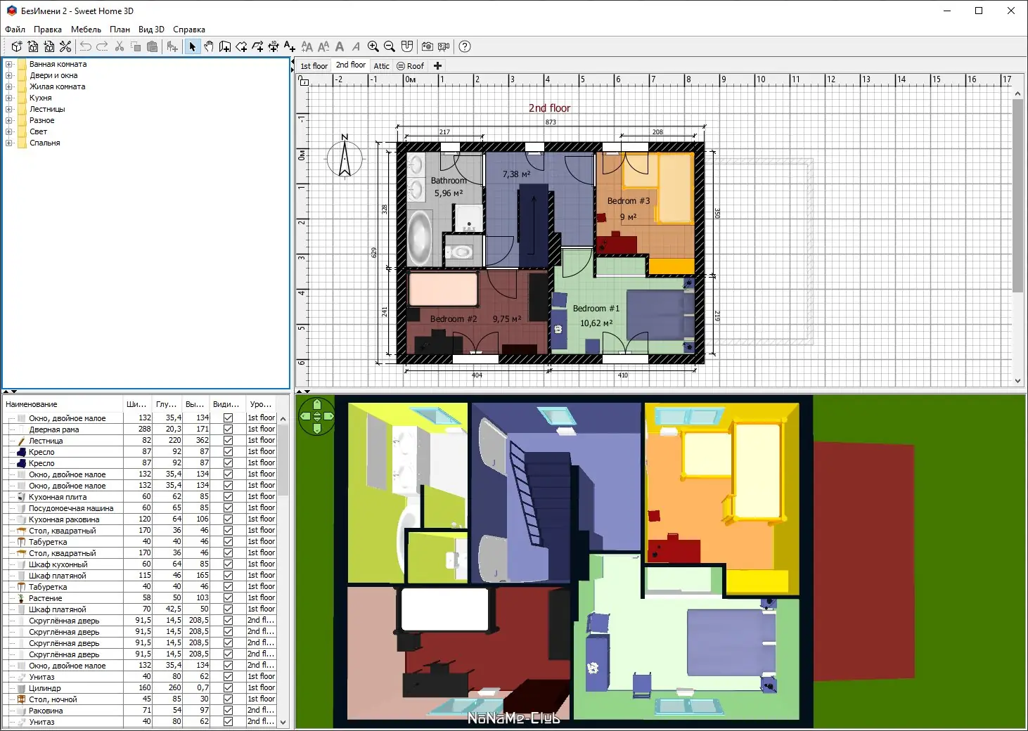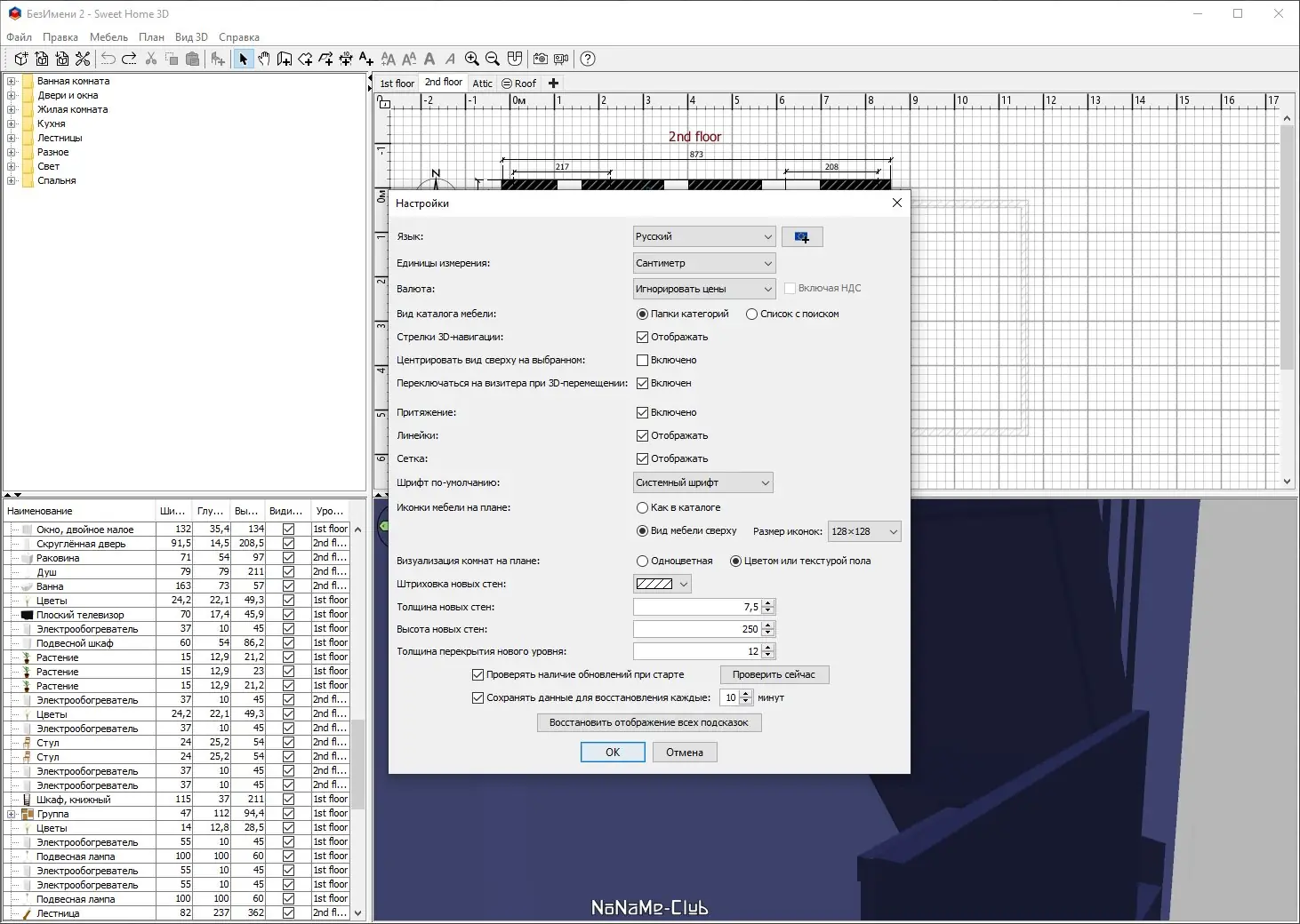 - Поддержка двумерного и трёхмерного режимов проектирования для точного отображения планировки.