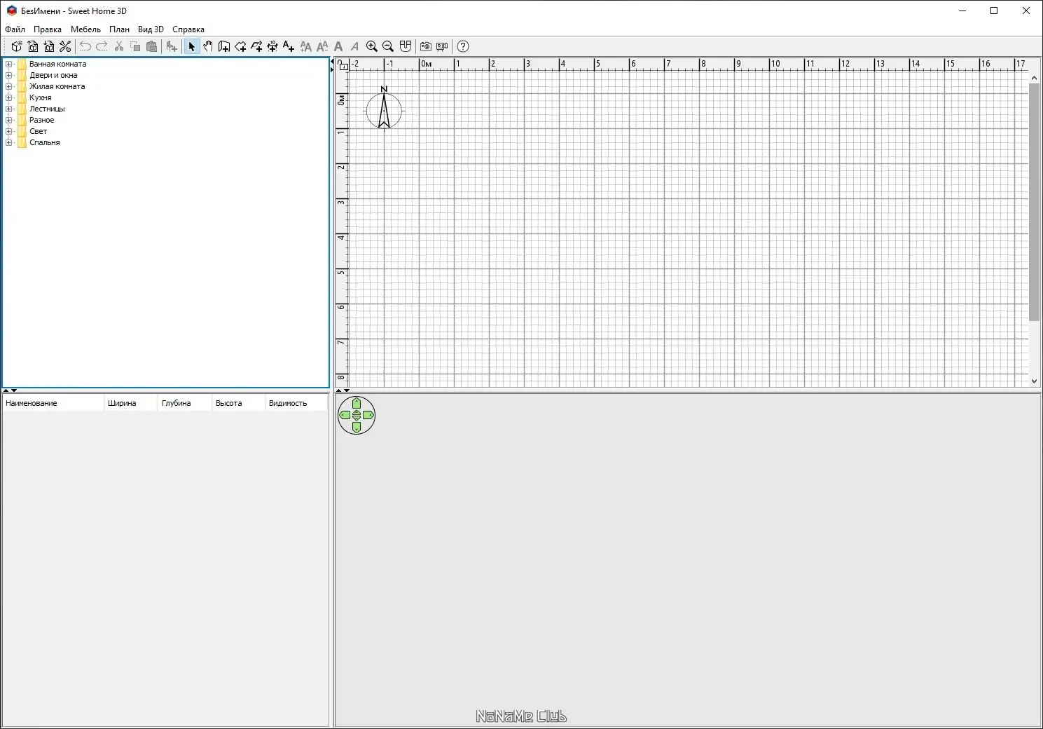 После запуска приложения пользователь видит рабочее пространство, разделённое на четыре основные области. В левой части находится панель с категориями объектов, в центре — масштабируемый план помещения, справа — список размещённых элементов, а внизу — окно 3D-просмотра. Для создания стен используется инструмент рисования, где можно указать длину, высоту и толщину. Мебель и другие объекты перетаскиваются из библиотеки на план, после чего их можно поворачивать, перемещать и масштабировать. Программа автоматически учитывает столкновения и привязку к стенам. При необходимости доступен импорт пользовательских 3D-моделей в формате OBJ или LWS. Все изменения мгновенно отображаются в трёхмерном виде, что упрощает оценку композиции и пространственного баланса.