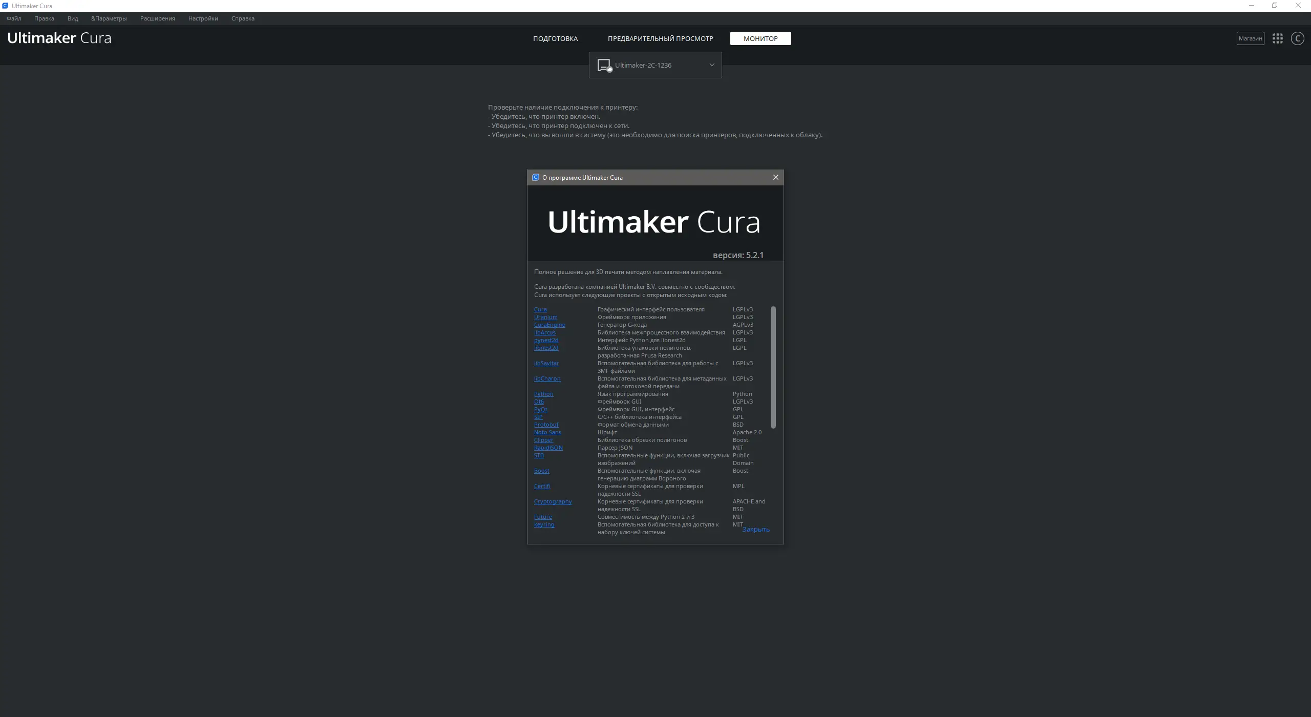 - Поддерживается широкий спектр моделей принтера, включая устройства не только от Ultimaker, но и сторонних производителей.