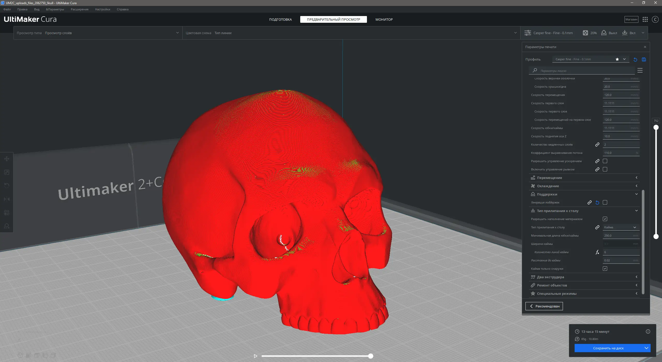 Использование Ultimaker Cura начинается с импорта 3D-модели, которую необходимо напечатать. После загрузки файл автоматически позиционируется на рабочей платформе, а система предлагает оптимальные настройки в зависимости от выбранного принтера и материала. Пользователь может изменить ориентацию, масштаб или разместить несколько объектов одновременно. В режиме предварительного просмотра доступна анимация слоёв, позволяющая визуально оценить ход печати и выявить потенциальные проблемы. Все изменения отображаются в реальном времени, что упрощает процесс корректировки. Для опытных пользователей доступен режим редактирования каждого слоя, настройки поддержек, решёток и скорости экструзии. Версия 5.10 внесла значительные улучшения в алгоритмы генерации пути печати, повысив общее качество и скорость обработки сложных моделей.