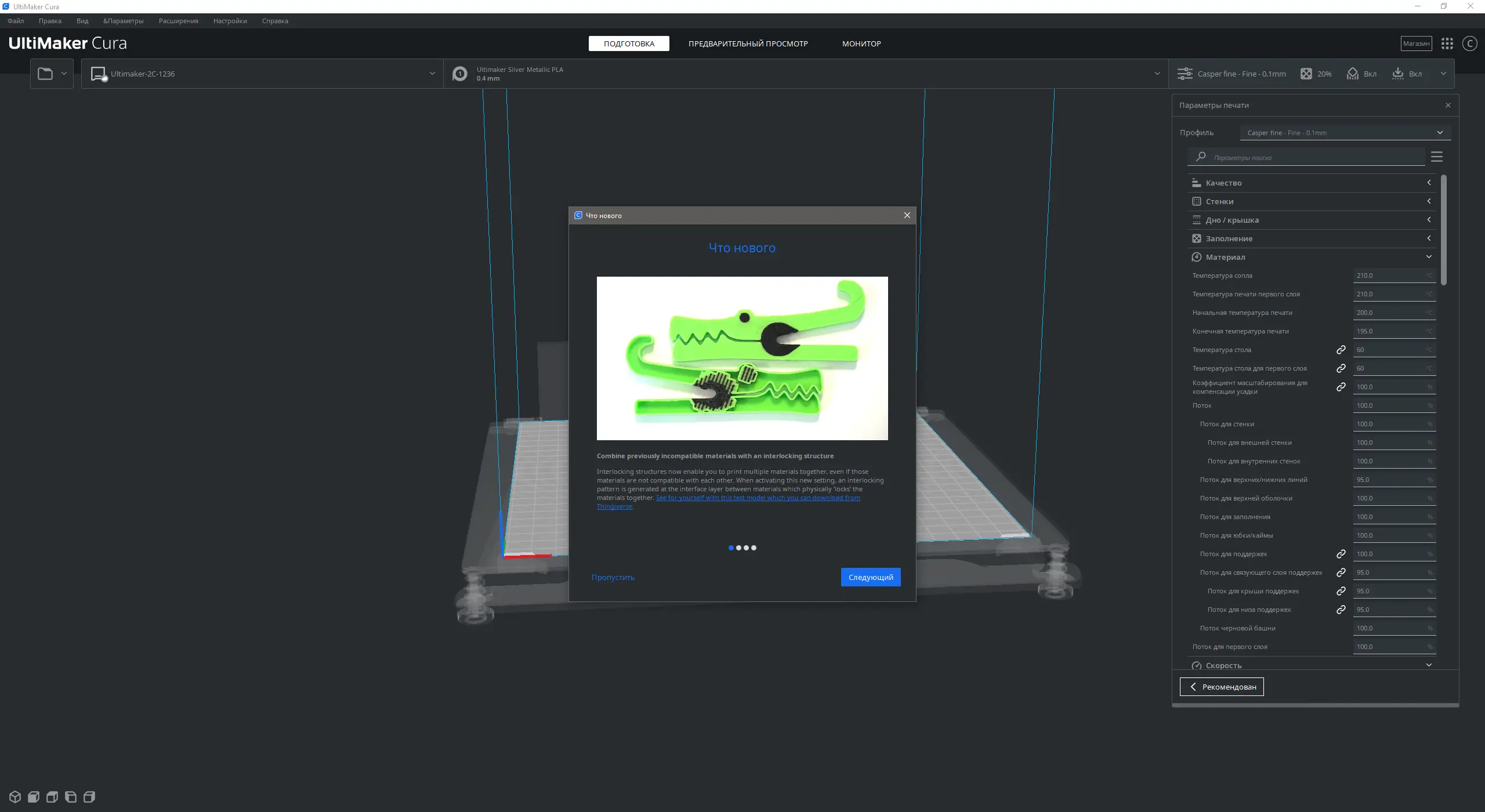 - Наличие встроенных библиотек материалов с преднастроенными режимами печати.
