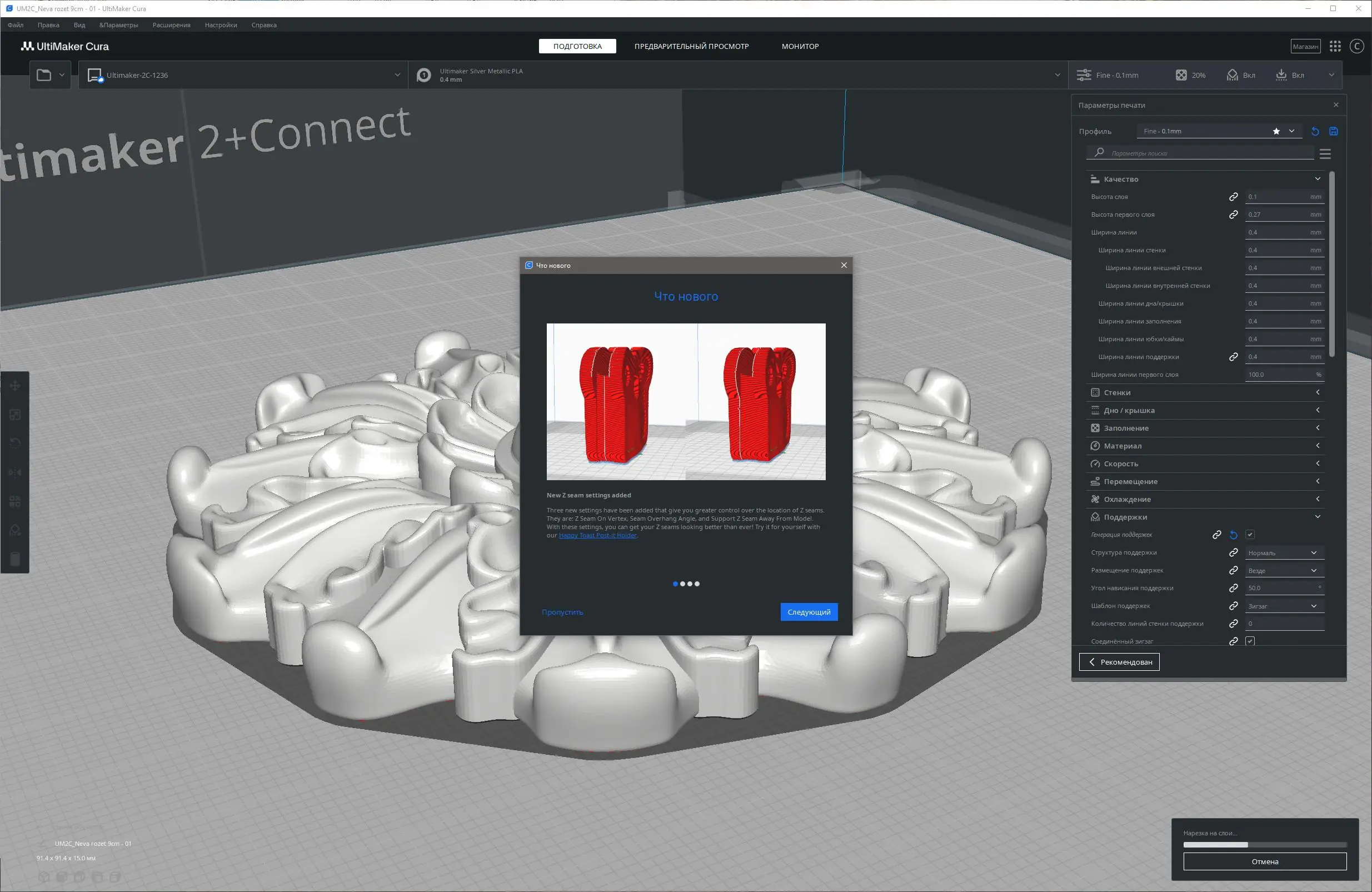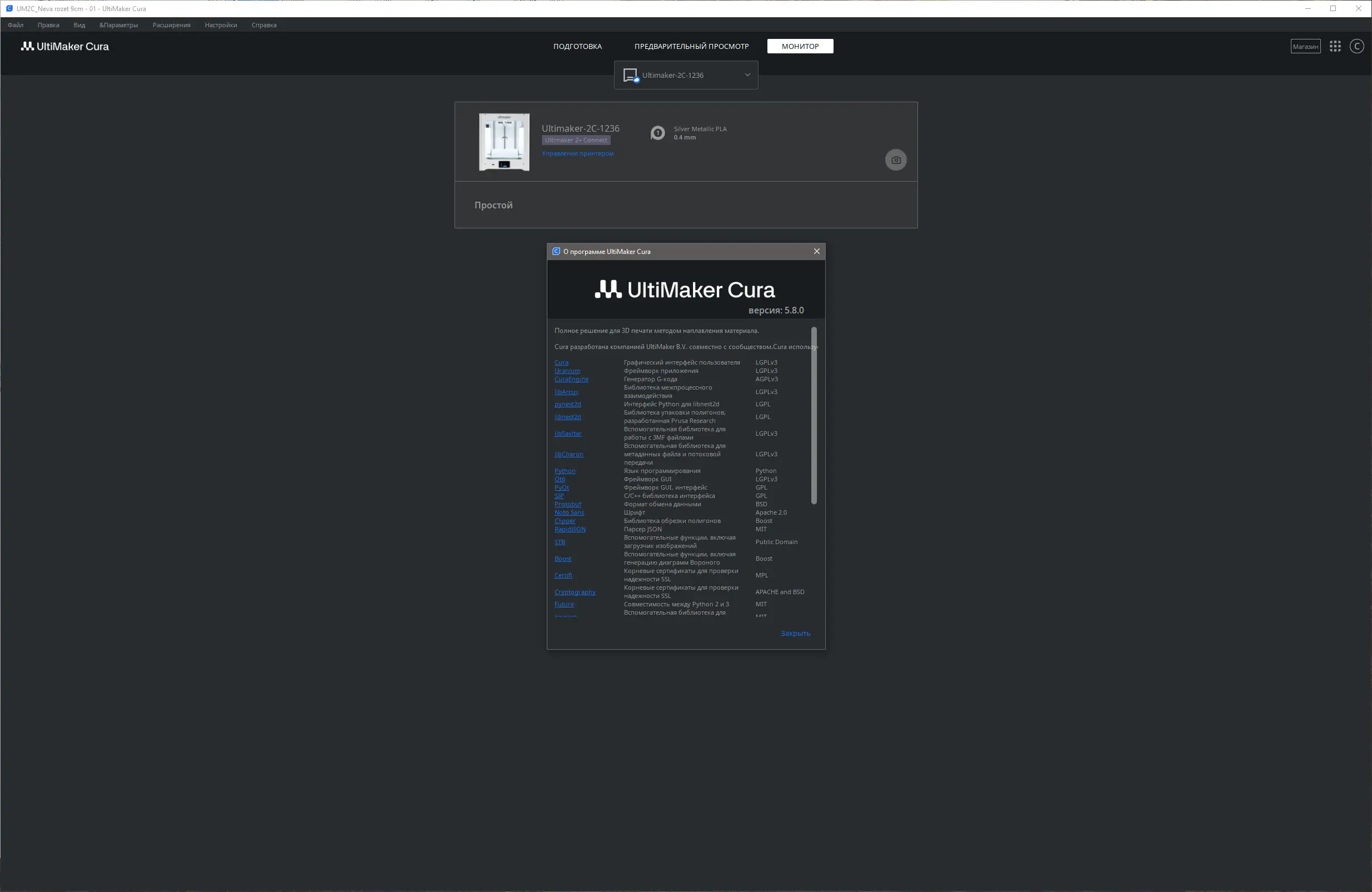 Ultimaker Cura — это универсальный слайсер для 3d-печати, который подходит как новичкам, так и опытным пользователям. Программа обеспечивает высокое качество нарезки моделей и совместима с широким спектром оборудования для 3д принтера. Интерфейс переведён на русский язык, что упрощает освоение функционала.