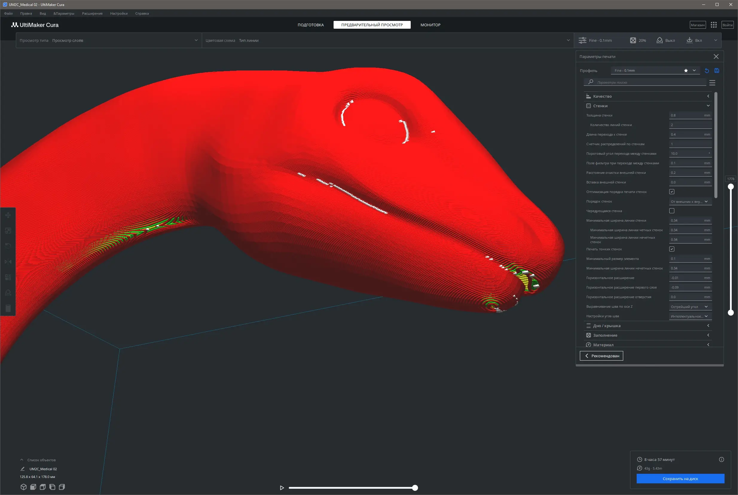 - Пользовательский режим открывает доступ к более чем 400 параметрам, включая температуру экструдера, скорость печати и заполнение.