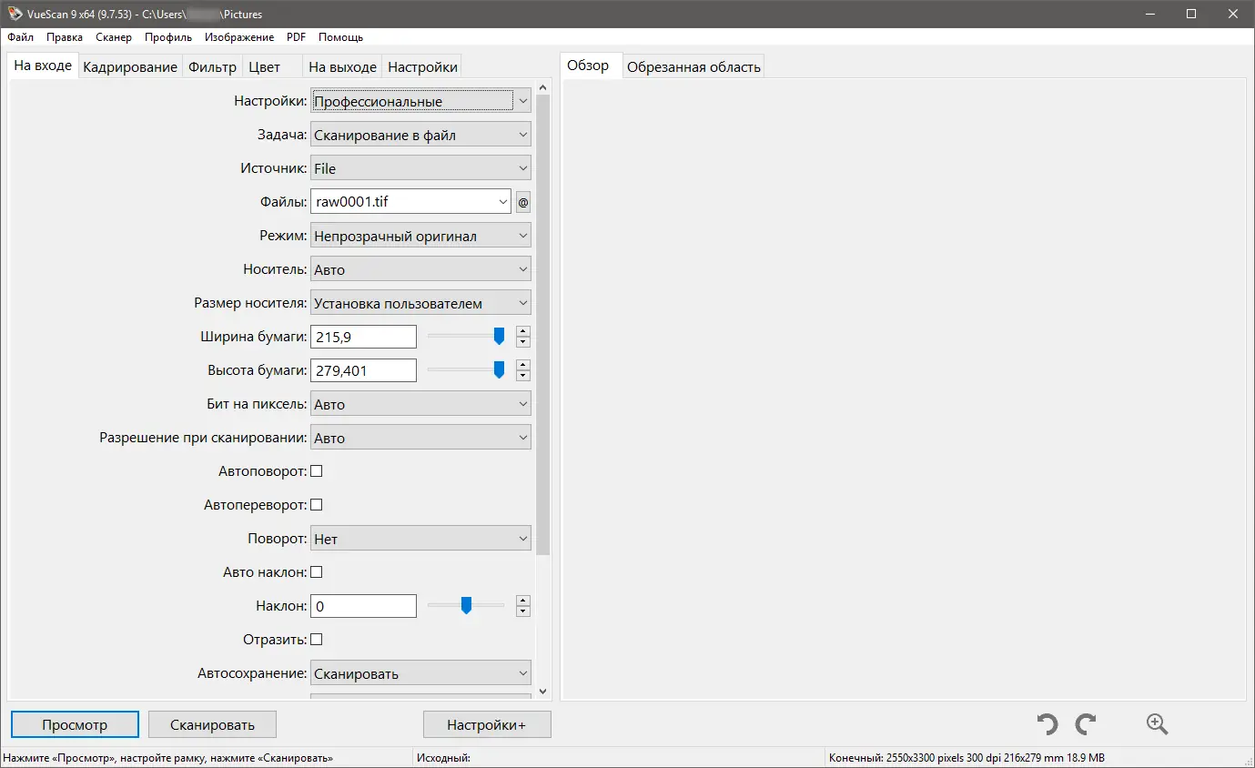 Работа с VueScan