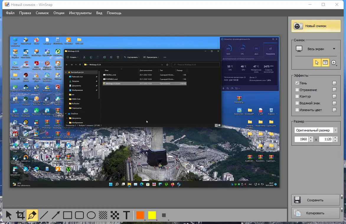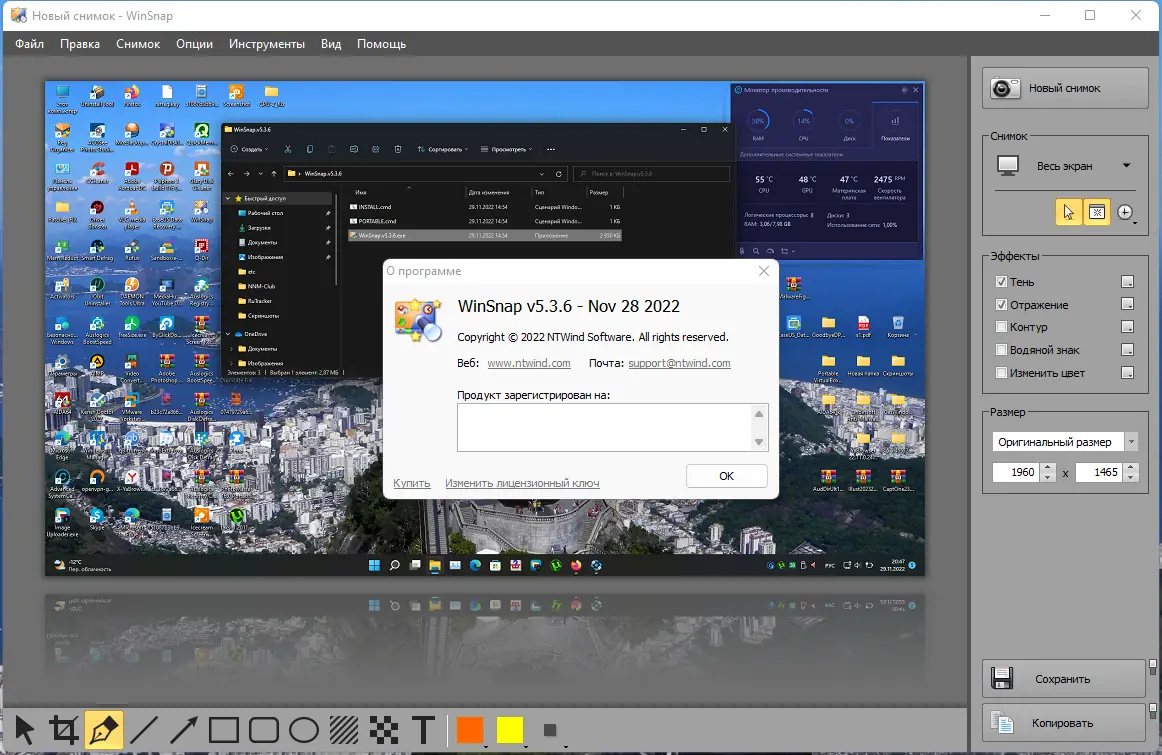 WinSnap — это компактное приложение для создания и редактирования скриншотов с возможностью настройки эффектов и автоматического сохранения. Программа поддерживает захват нестандартных окон, наложение теней, отражений и экспорт в популярные графические форматы.