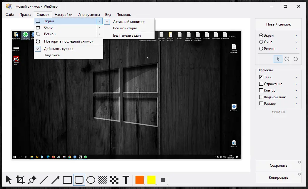 Работа с WinSnap
