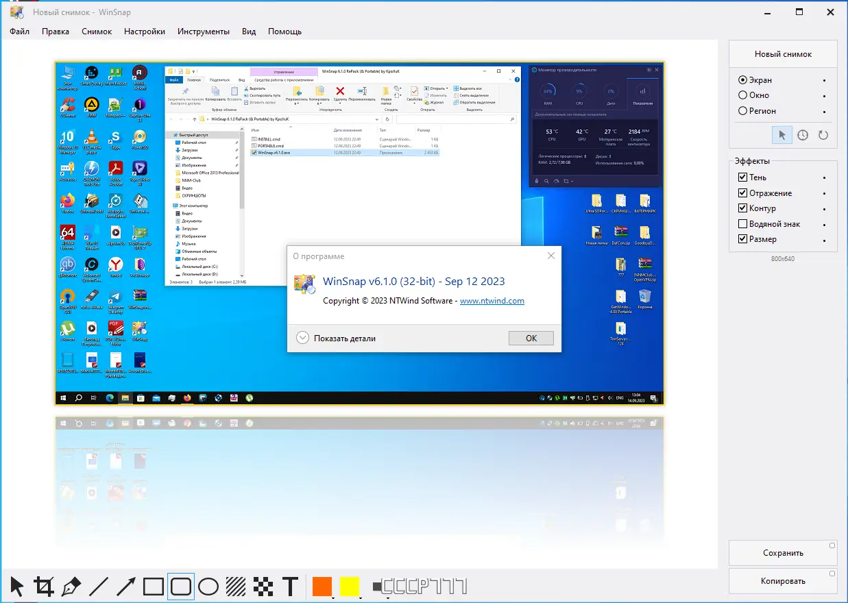WinSnap — это компактное приложение для создания скриншотов экрана с возможностью дальнейшего редактирования снимков. Программа поддерживает захват произвольных областей, отдельных окон, включая нестандартные по форме, а также полноэкранные снимки с задержкой. Встроенные инструменты позволяют улучшать качество изображений, добавлять эффекты и быстро сохранять результат в популярных форматах. Утилита подойдёт как для повседневного использования, так и для подготовки материалов для документации, презентаций или обучающих курсов.