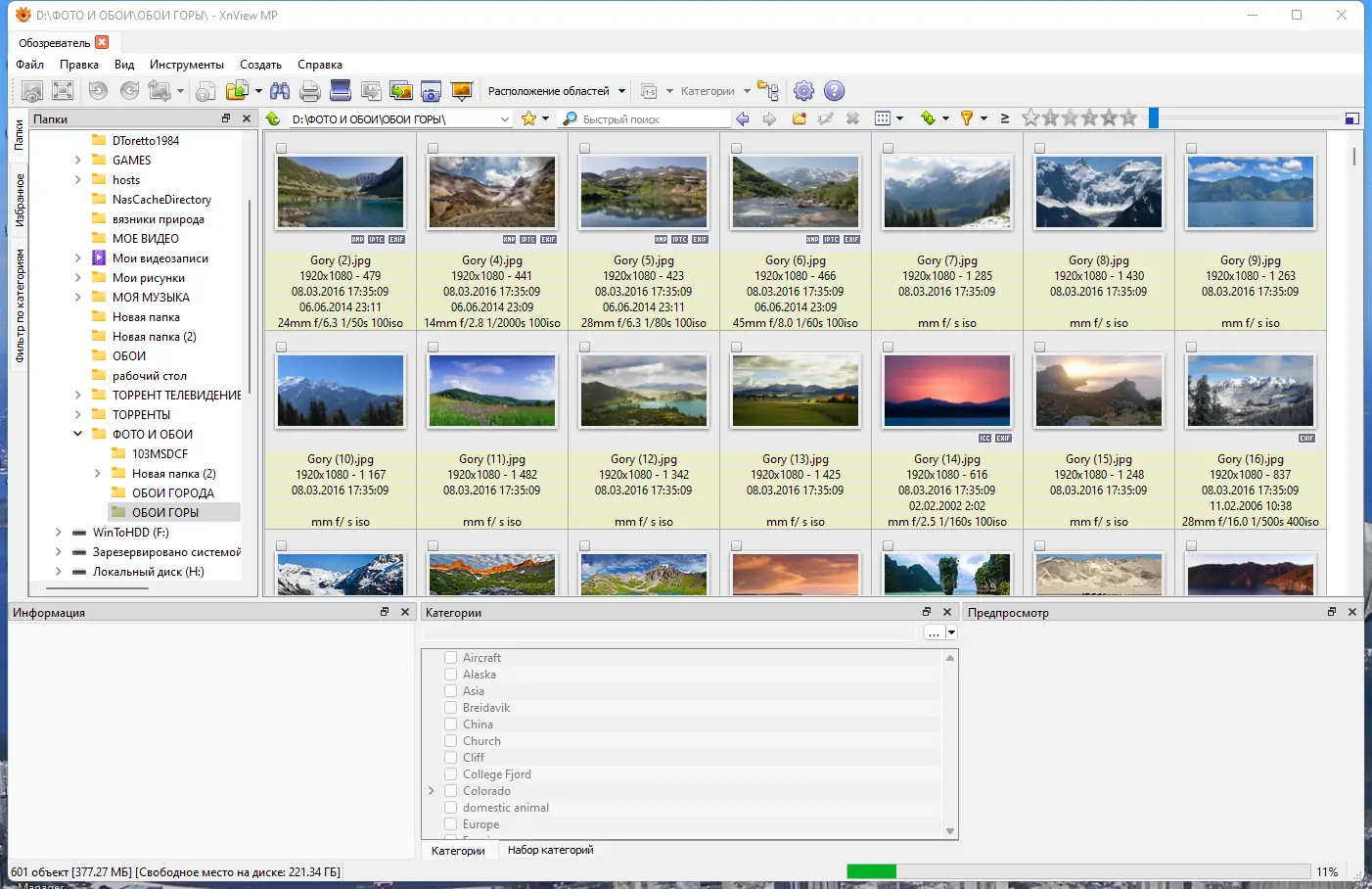 Программа поддерживает работу с метаданными, включая GPS-координаты и дату съёмки, что особенно полезно для фотографов.