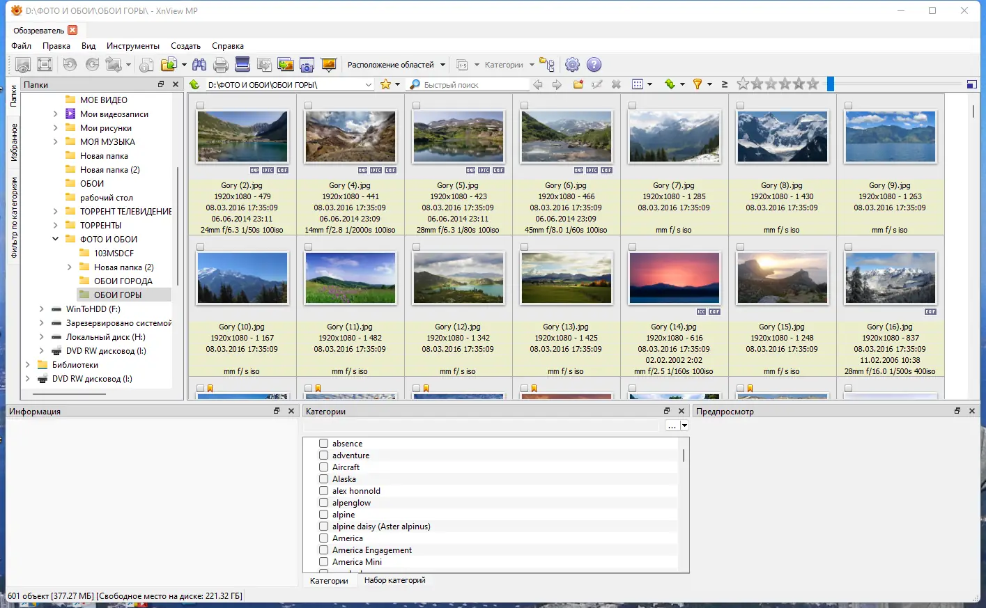 Интерфейс XnViewMP построен по принципу проводника Windows, что делает навигацию интуитивно понятной даже новичкам.