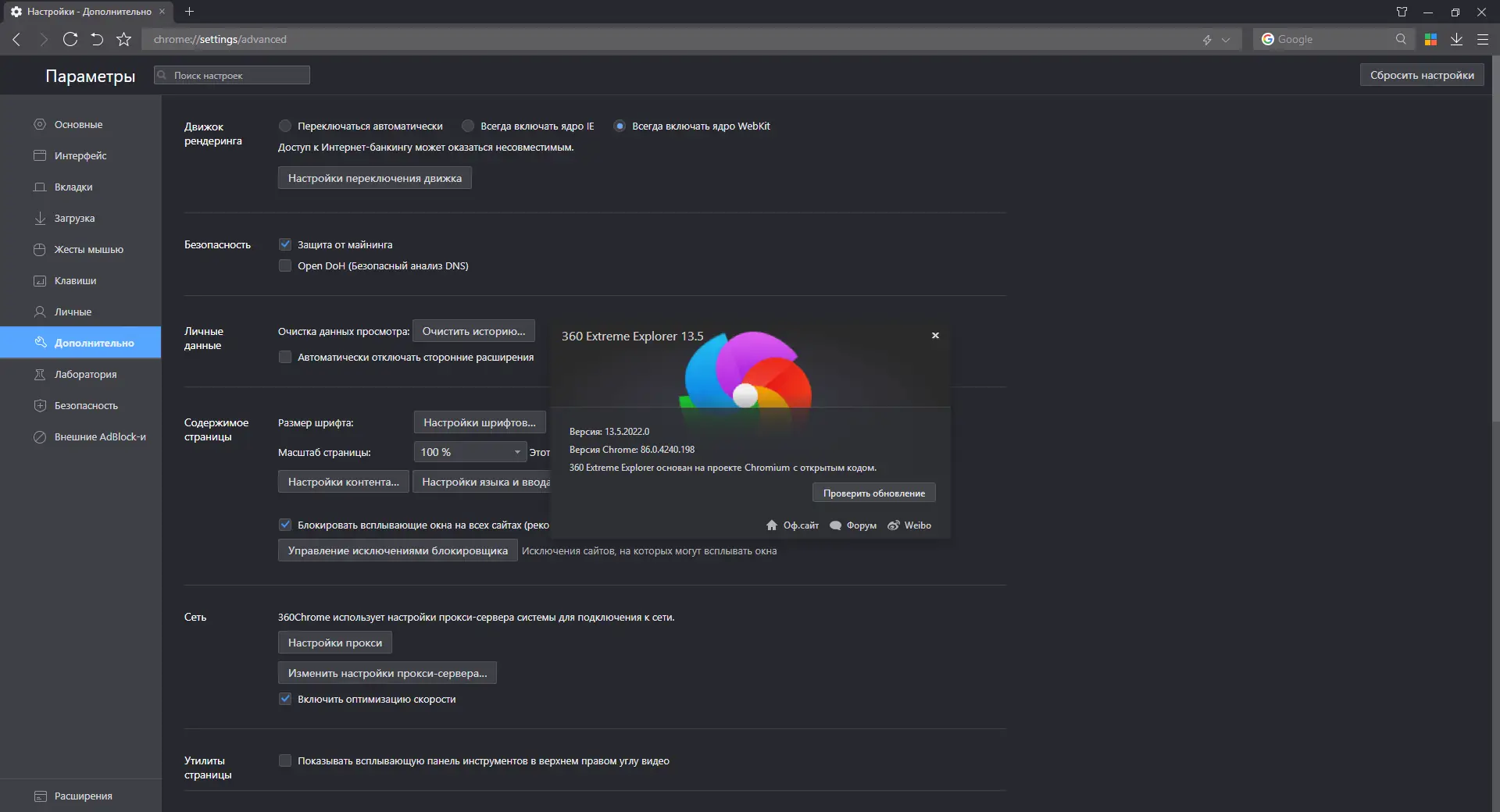 360 Extreme Explorer — это браузер, ориентированный на пользователей, которым важны безопасность и функциональность. Он использует двойную ядерную архитектуру, позволяя переключаться между движками Webkit и Internet Explorer в зависимости от типа загружаемой страницы. Это обеспечивает совместимость с устаревшими сайтами и высокую производительность при работе с современными веб-ресурсами. Благодаря встроенному фильтру фишинговых и вредоносных URL, пользователь защищён от мошеннических атак и вирусного ПО.