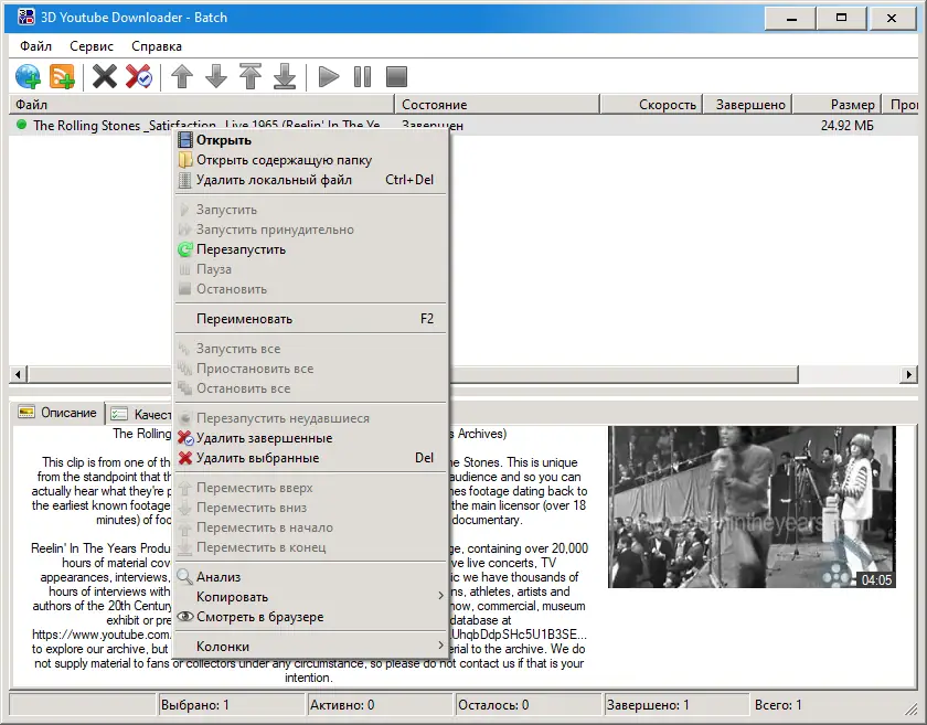3D Youtube Downloader batch — это мощное приложение для массовой загрузки видео с YouTube и других популярных платформ. Программа поддерживает пакетное скачивание, автоматическое распознавание ссылок и конвертацию в нужные форматы, обеспечивая высокую скорость и удобство при работе с большими объёмами контента. Инструмент подходит как для личного, так и для профессионального использования.