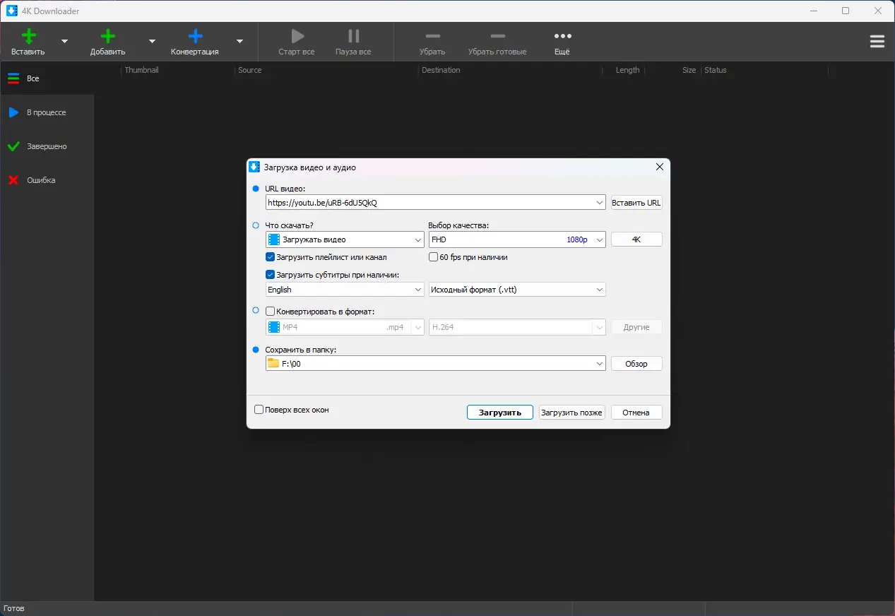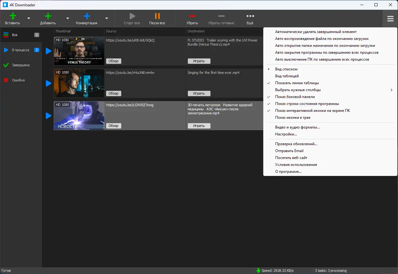 Работа с 4K Downloader