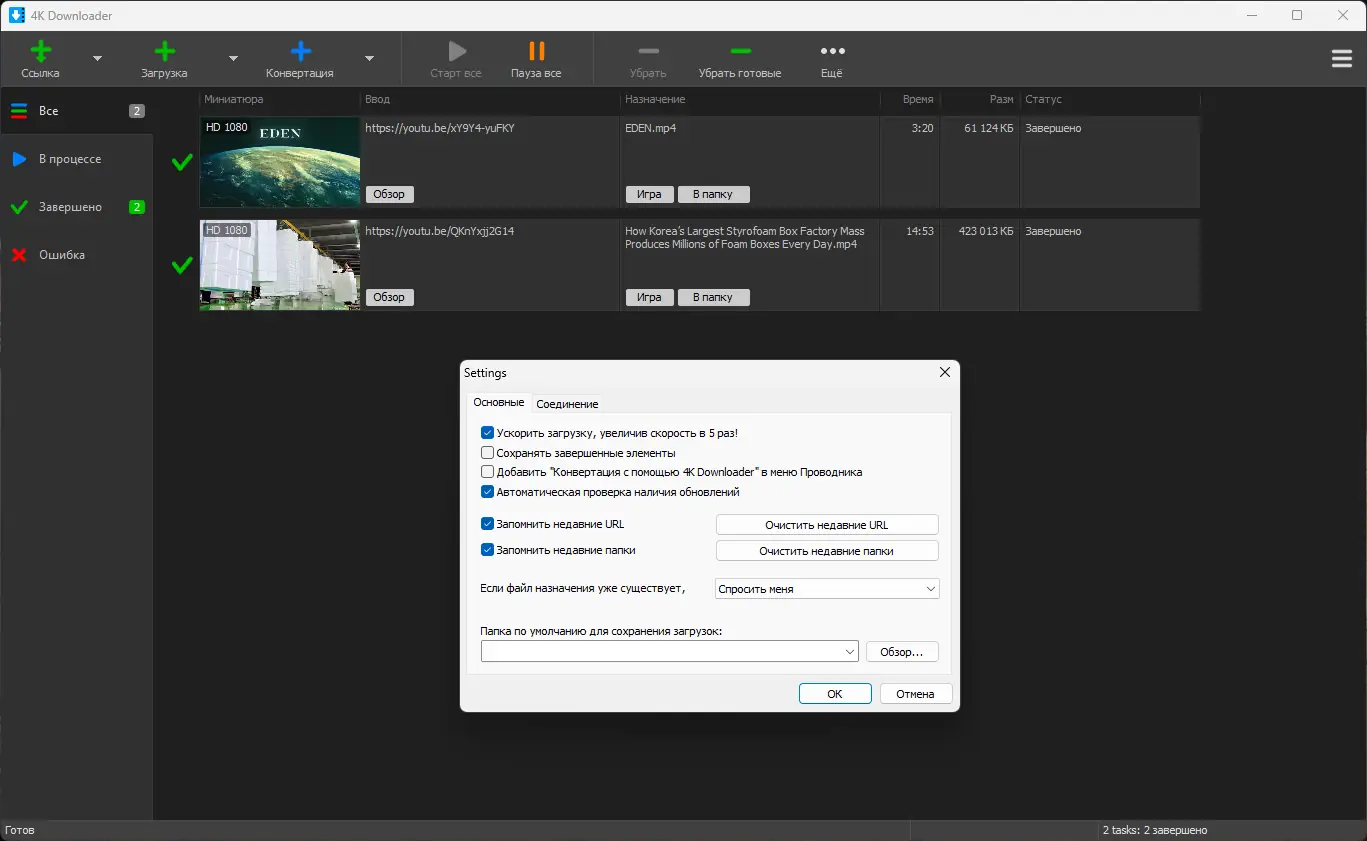 Работа с 4K Downloader