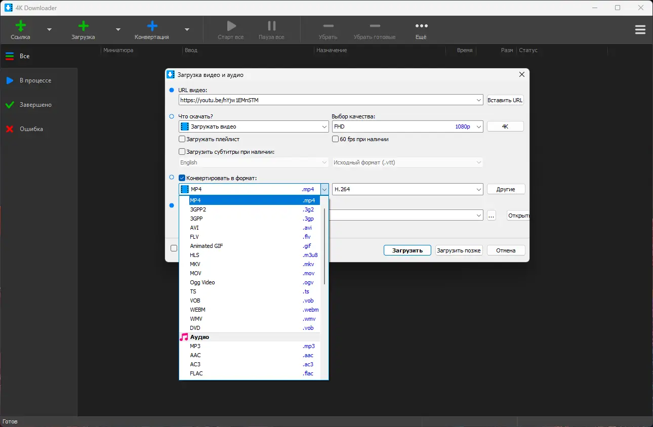 4K Downloader — это приложение для загрузки видео с YouTube и других видеоплатформ в высоком и ультравысоком разрешении, включая форматы 4K и 8K. Программа поддерживает широкий выбор источников, автоматически распознаёт скопированные ссылки и позволяет сохранять контент в различных форматах, включая аудио. Удобный интерфейс и поддержка списков воспроизведения делают процесс скачивания простым и эффективным.