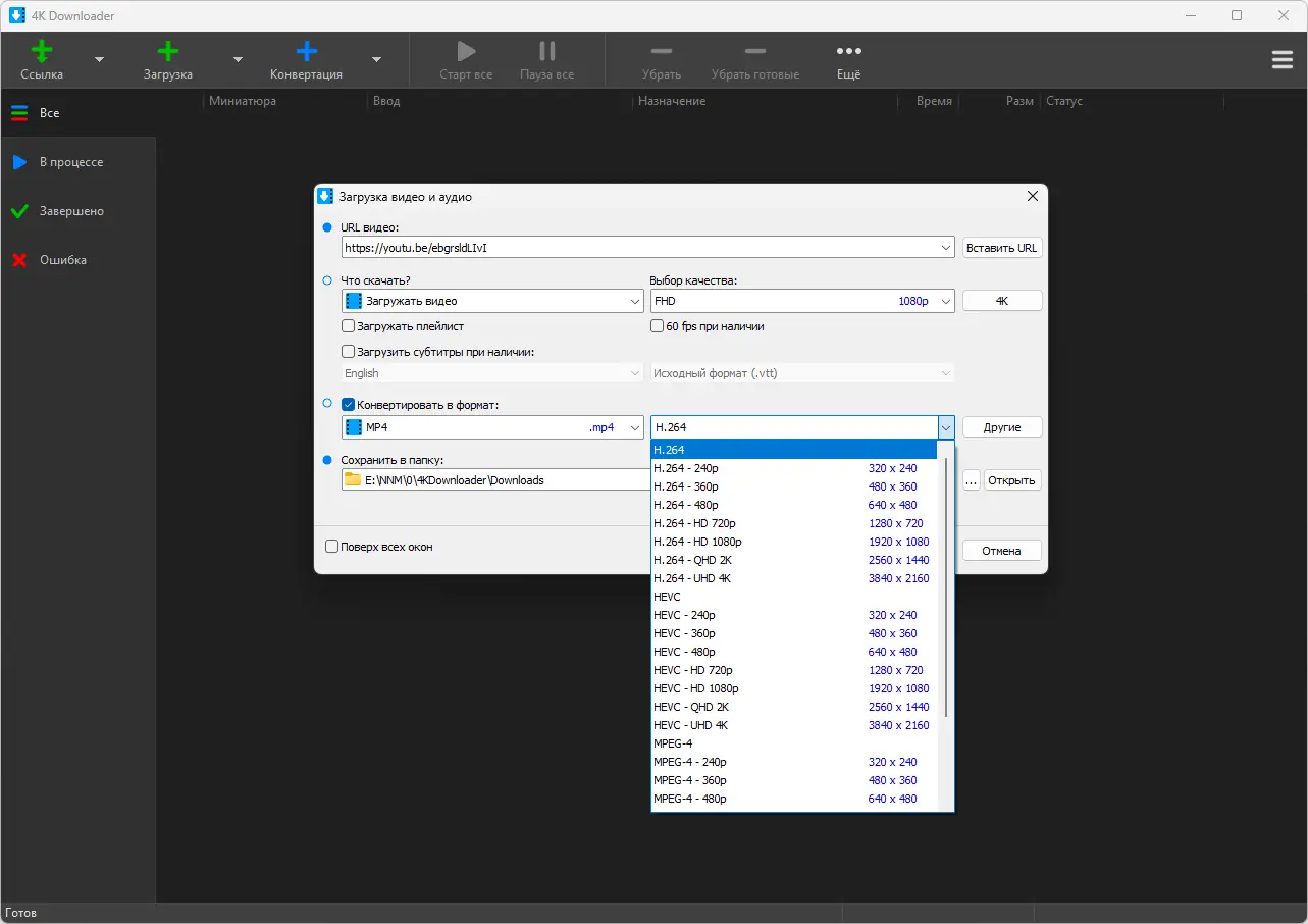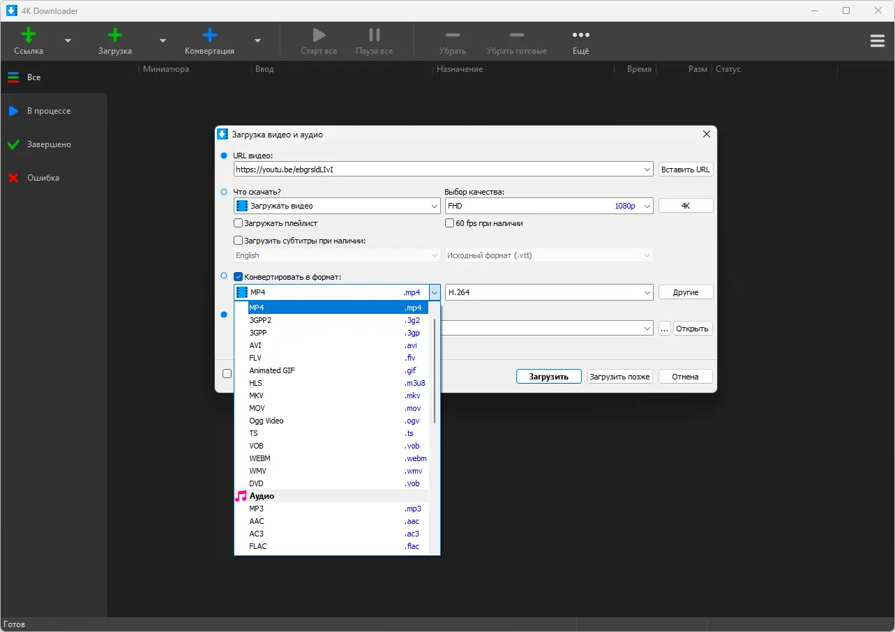 Работа с 4K Downloader