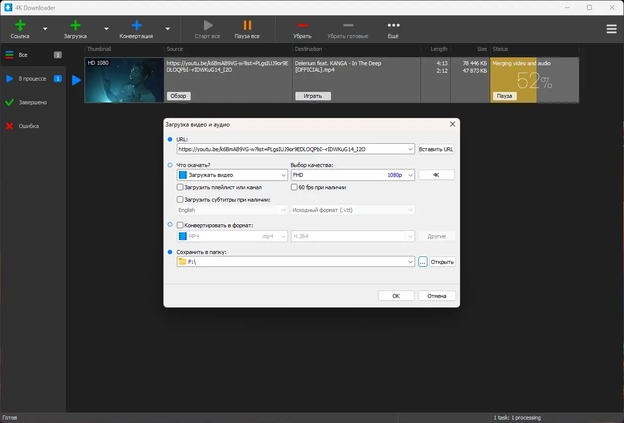 Программа позволяет не только загружать отдельные файлы, но и обрабатывать целые плейлисты, что особенно удобно для архивирования контента.