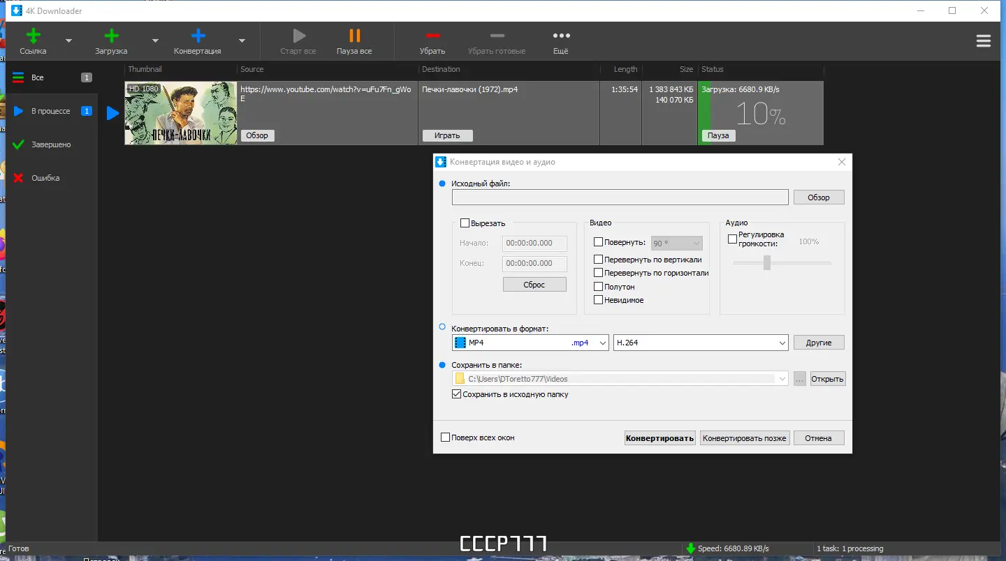 - Возможность конвертации видео в аудио и выбор целевого качества