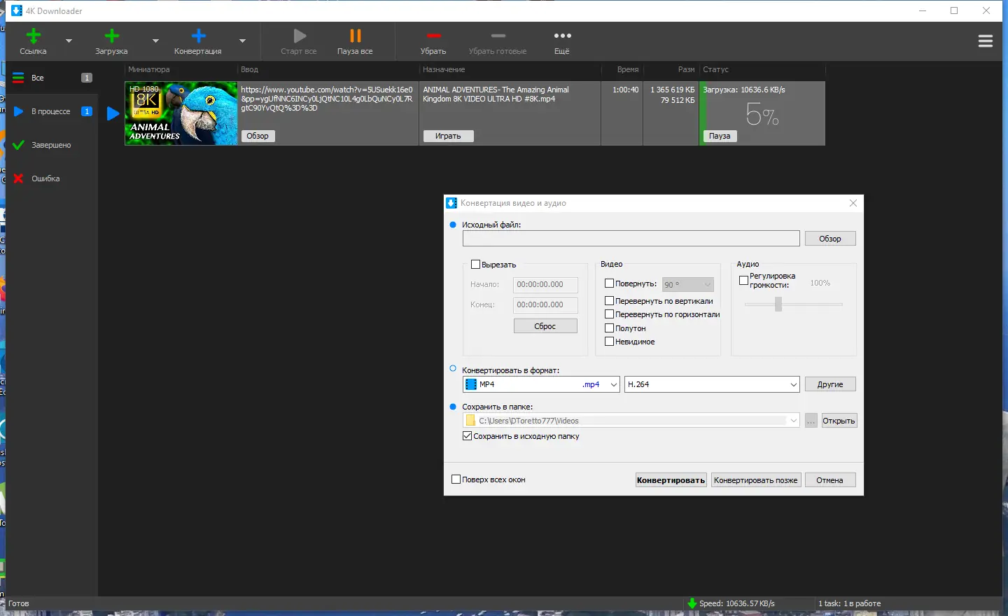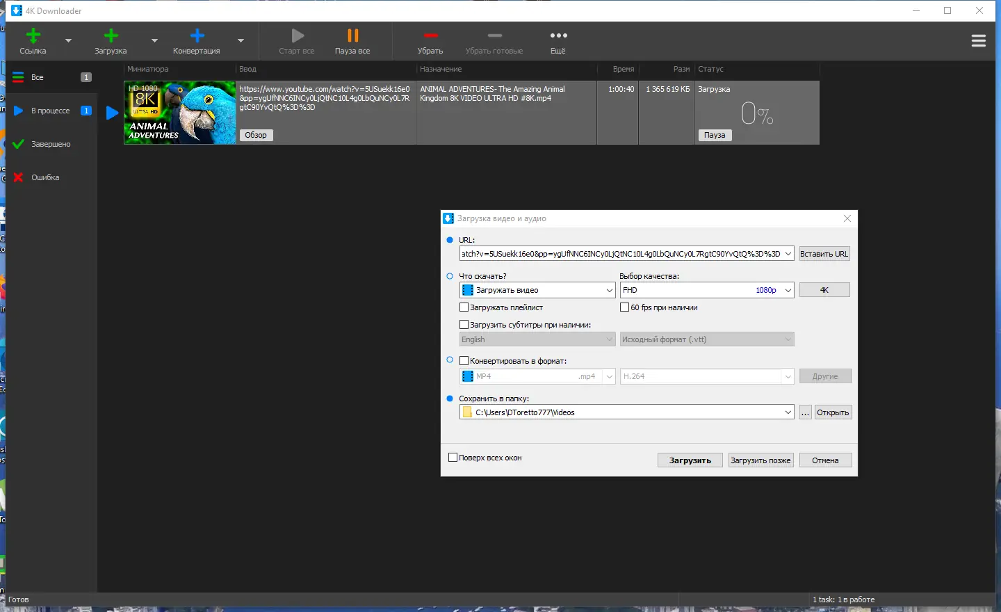 4K Downloader — это удобное приложение для загрузки видео с популярных платформ, включая YouTube и Dailymotion, в высоком и сверхвысоком качестве, вплоть до формата 8K UHD. Программа поддерживает скачивание отдельных роликов, плейлистов и аудиодорожек, обеспечивая гибкость в выборе формата и разрешения.