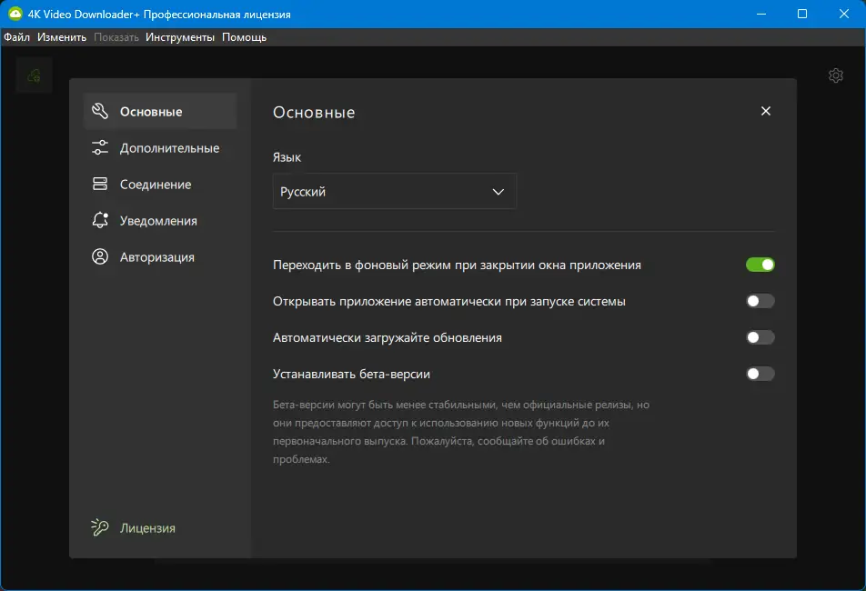 - Наличие умного режима, который автоматизирует выбор формата и качества для новых ссылок