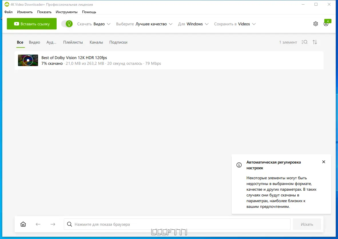 4K Video Downloader — это программа для загрузки видео, аудио и субтитров с YouTube и других популярных платформ. Приложение поддерживает высокие разрешения, включая 4K и 8K, а также позволяет сохранять контент в различных форматах. Утилита работает на Windows, macOS и Linux, обеспечивая удобное управление закачками.