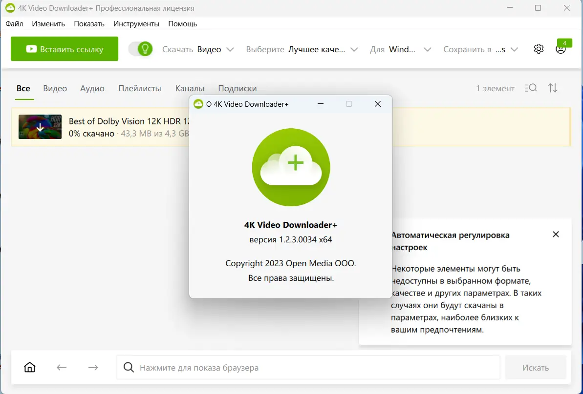 4K Video Downloader — это универсальное приложение для загрузки видео, аудио и субтитров с YouTube и других популярных платформ. Программа поддерживает высокие разрешения, включая 4K и 8K, а также позволяет скачивать целые плейлисты, каналы и 360°-видео. Утилита работает на Windows, macOS и Linux, обеспечивая стабильную работу и широкие настройки для пользователей.