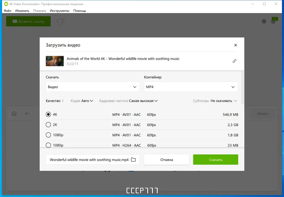 4K Video Downloader — программа для загрузки видео, аудио и субтитров с YouTube и других популярных платформ. Поддерживает высокие разрешения, включая 4K и 8K, а также позволяет скачивать плейлисты, целые каналы и 360°-видео. Утилита работает на Windows, macOS и Linux, обеспечивая стабильную работу и гибкие настройки загрузки.