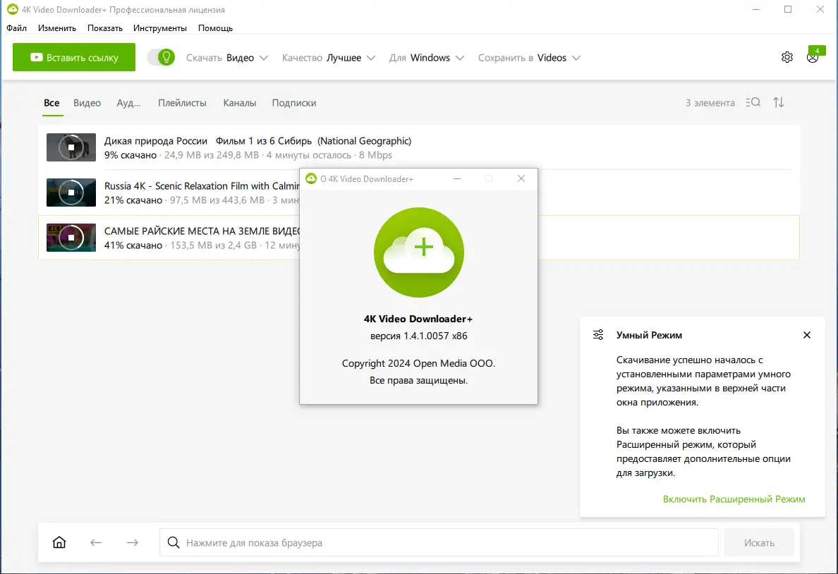 Использование приложения не требует специальных знаний. Достаточно скопировать ссылку на видео или плейлист из браузера и вставить её в окно программы. После обработки появится список доступных форматов и разрешений для скачивания. Пользователь может выбрать нужный вариант, указать папку назначения и начать загрузку. Включённый умный режим автоматически применяет предустановленные параметры, ускоряя процесс. Для доступа к заблокированному контенту можно настроить прокси-сервер прямо в настройках приложения.