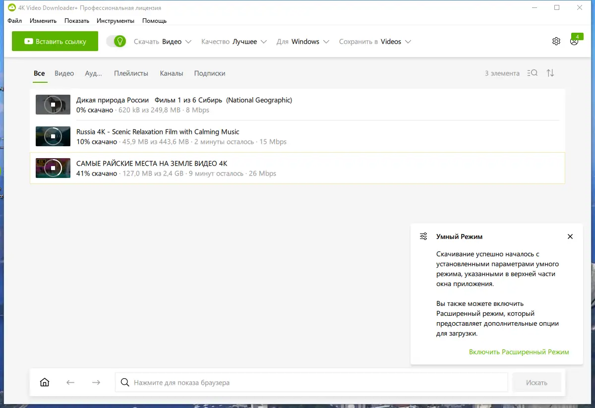 Программа демонстрирует высокую стабильность и поддержку множества форматов, что особенно важно для пользователей, собирающих медиатеку. Скачивание происходит по нескольким потокам, что увеличивает скорость передачи данных. Поддержка 3D-видео и панорамного контента добавляет ценности для любителей иммерсивного просмотра. Утилита также умеет распознавать встроенные видео на сторонних сайтах, что упрощает работу с контентом.