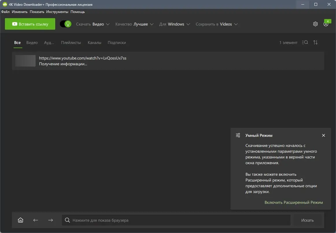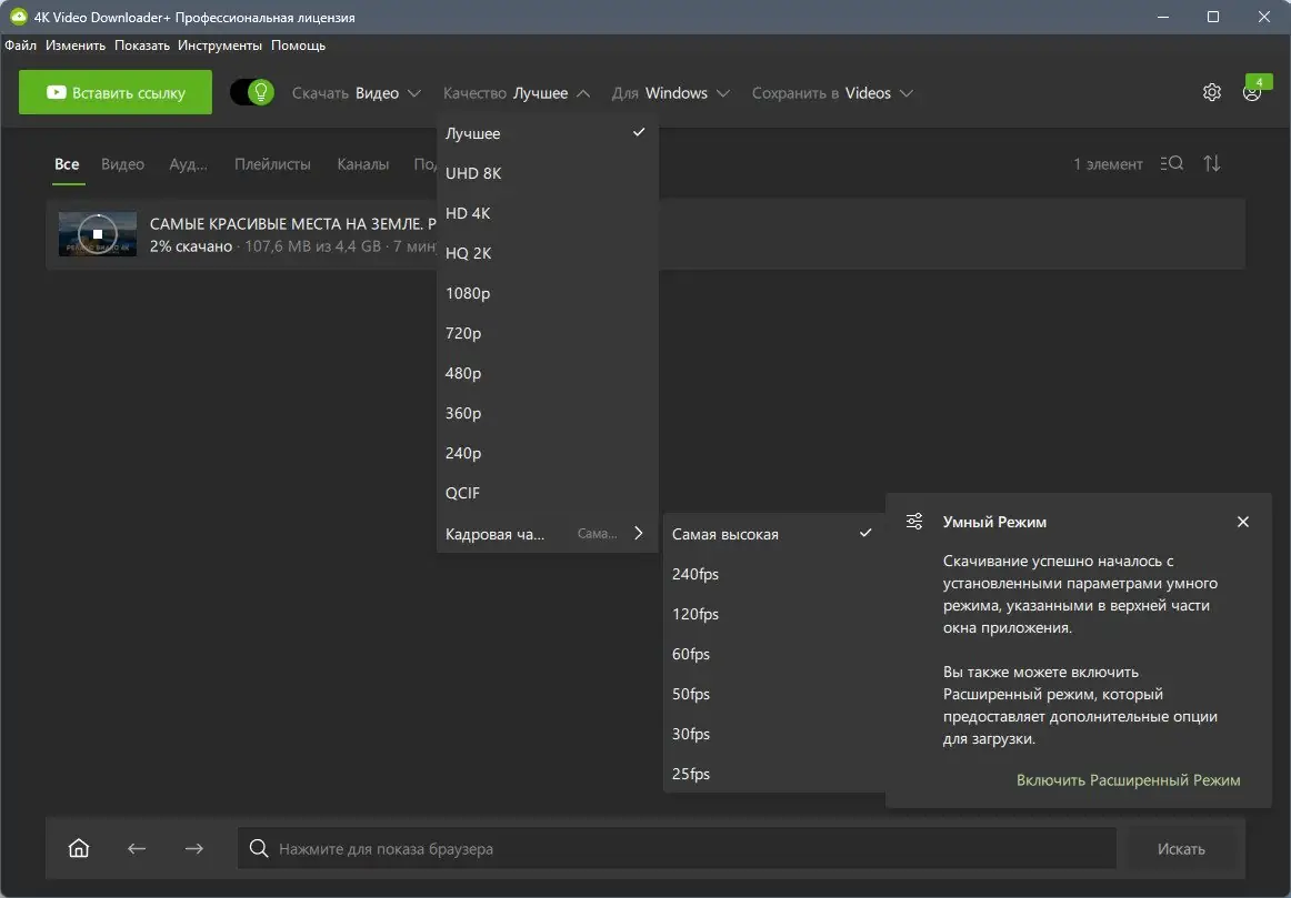 4K Video Downloader — это мощная утилита для загрузки видео, аудио и субтитров с YouTube и других популярных платформ. Программа поддерживает высокие разрешения, включая 4K и 8K, а также позволяет скачивать целые каналы, плейлисты и 360°-видео. Удобный интерфейс и расширенные настройки делают процесс закачки быстрым и комфортным.