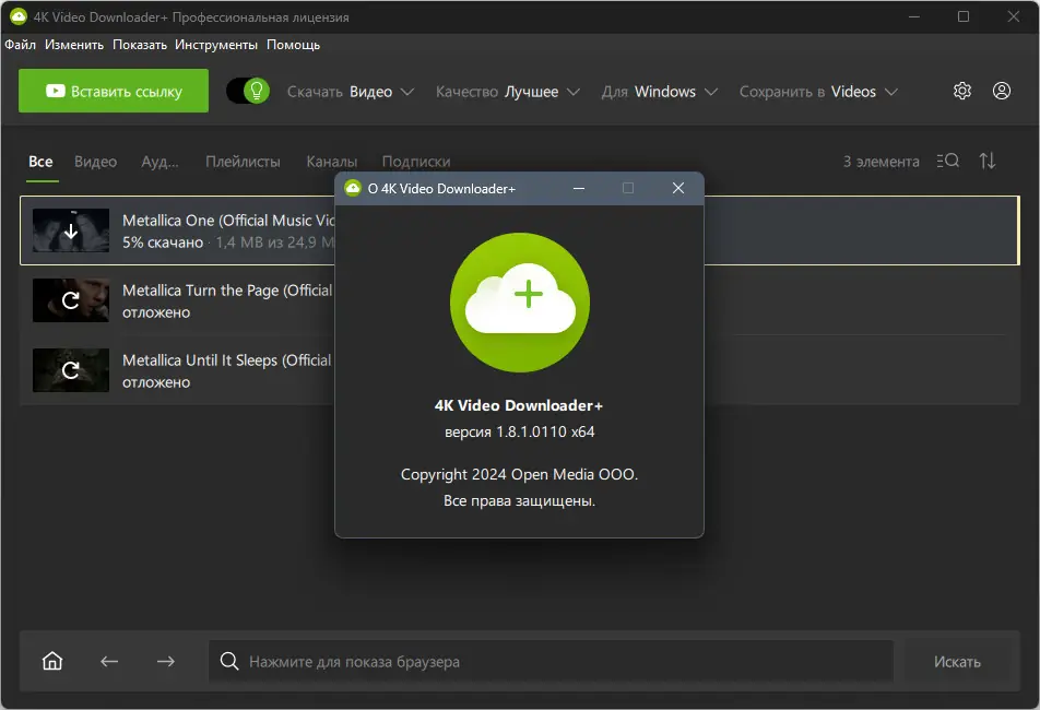 4K Video Downloader — это удобное приложение для загрузки видео, аудио и субтитров с YouTube и других популярных платформ. Программа поддерживает высокие разрешения, включая 4K и 8K, а также 3D и 360° видео. Она позволяет сохранять контент в различных форматах и настраивать процесс скачивания под индивидуальные потребности.