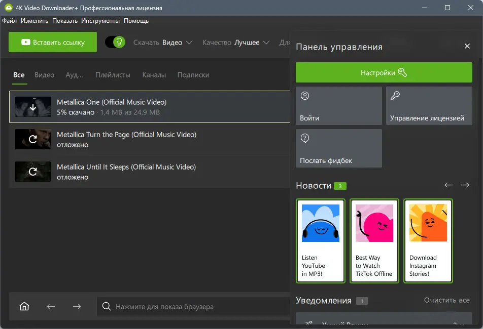 4K Video Downloader сочетает в себе мощный функционал и простоту интерфейса. Программа стабильно работает на разных операционных системах и поддерживает широкий спектр форматов. Удобные настройки скорости, потоков и уведомлений делают процесс загрузки комфортным. При этом отсутствие встроенного поиска может быть неудобным для некоторых пользователей.