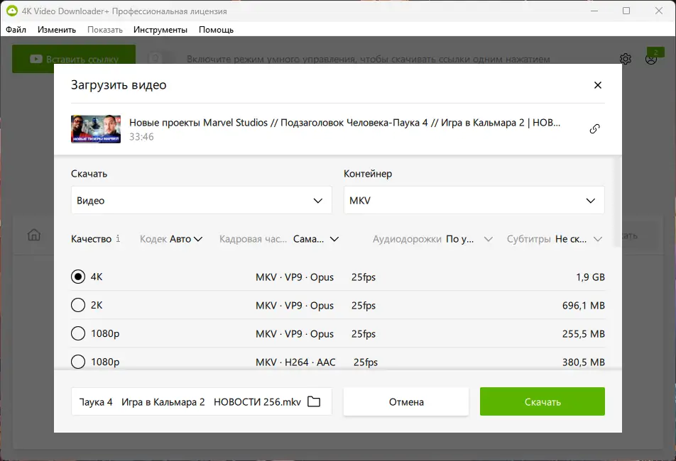 4K Video Downloader сочетает в себе мощные функции и простоту управления, что делает его одним из лучших решений в категории загрузчиков видео.