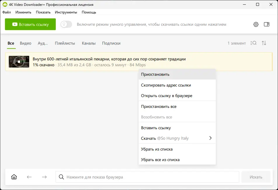 Работа с 4K Video Downloader