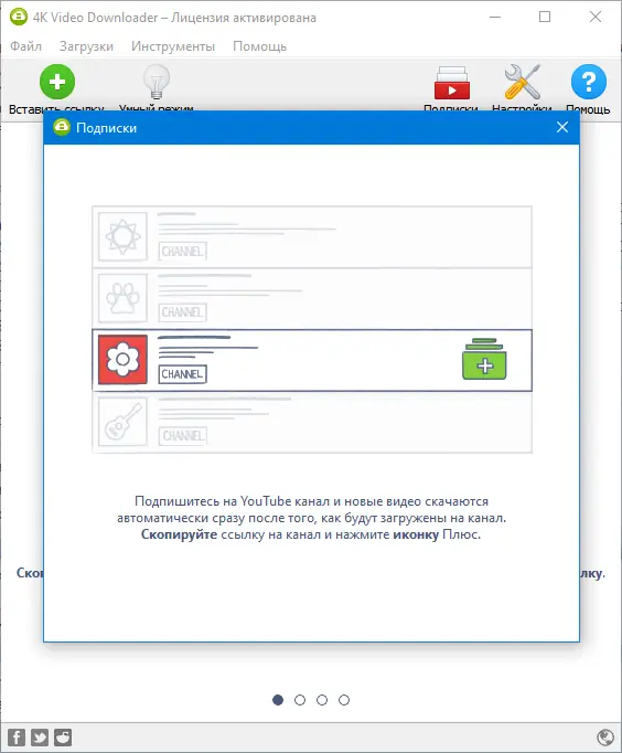 - Возможность загружать целые плейлисты и каналы, включая автоматические обновления через подписки.