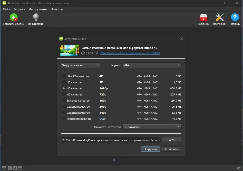 4K Video Downloader — это надёжное решение для тех, кто хочет сохранять видеоматериалы из интернета без потери качества. Программа поддерживает широкий спектр ресурсов, включая YouTube, Vimeo, Facebook, SoundCloud и другие. Пользователи могут выбирать форматы вывода: MP4, MKV, M4A, MP3, FLV и 3GP, адаптируя файлы под свои устройства.