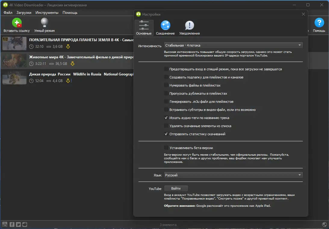 Программа демонстрирует высокую эффективность при работе с мультимедийным контентом. Она стабильно обрабатывает большие объёмы данных, поддерживает фоновые загрузки и корректно работает с разными типами контента, включая 3D-видео и 360-градусные ролики. Расширенные настройки позволяют контролировать скорость, количество потоков и уведомления. При этом интерфейс остаётся понятным даже новичкам. Программа адаптирована под различные операционные системы, включая Windows, macOS и Linux, что расширяет её доступность.