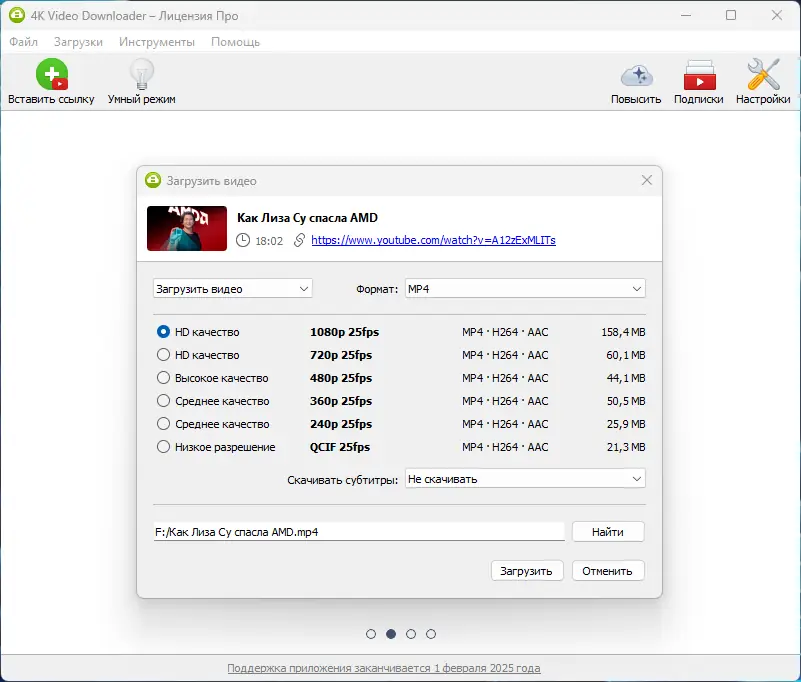 Использование приложения начинается с копирования ссылки на видео, плейлист или канал. Достаточно вставить URL в соответствующее поле, и программа автоматически определит доступные форматы. Пользователь может выбрать разрешение, аудиодорожку, формат и папку для сохранения. Включённый умный режим позволяет задать предпочтительные параметры один раз, после чего все последующие загрузки будут выполняться автоматически. Также доступна настройка прокси-сервера, что помогает обходить региональные ограничения. Программа корректно обрабатывает встроенные видео с любых сайтов, распознавая источник без дополнительных действий.