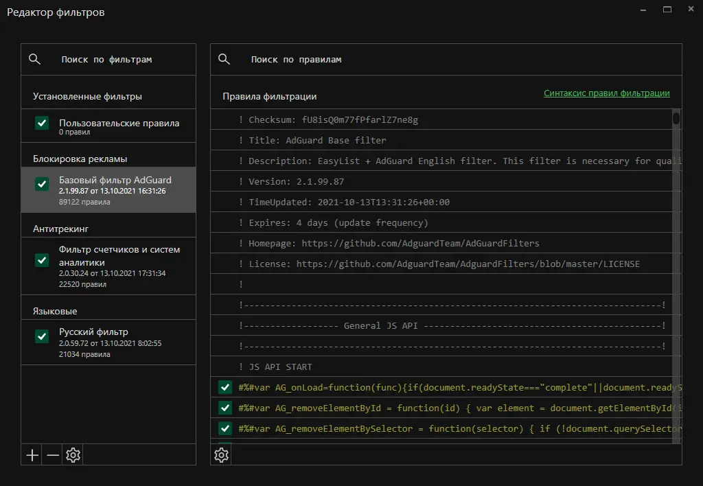 Работа с Adguard