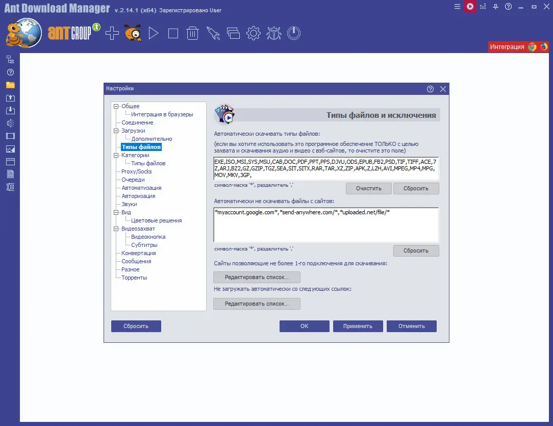 Работа с Ant Download Manager