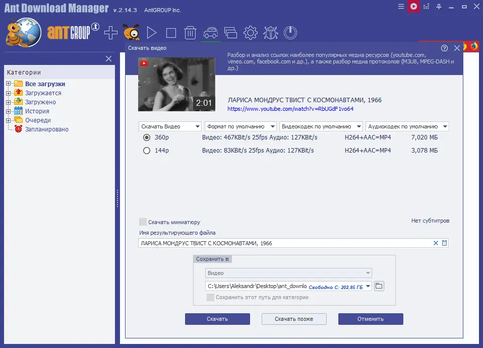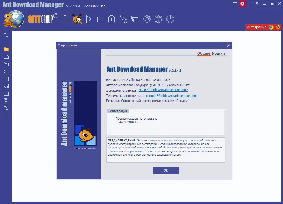 Ant Download Manager — это современный загрузчик, разработанный для эффективной и быстрой закачки файлов любого типа из глобальной сети. Он использует многопоточность, что позволяет существенно увеличить скорость получения данных по сравнению со стандартными средствами браузеров. Программа стабильно работает с перебоями соединения, автоматически восстанавливает загрузки после сбоев и поддерживает широкий спектр протоколов и форматов. Она подходит как для повседневных задач, так и для массовой закачки контента, включая видео и аудио с популярных платформ.