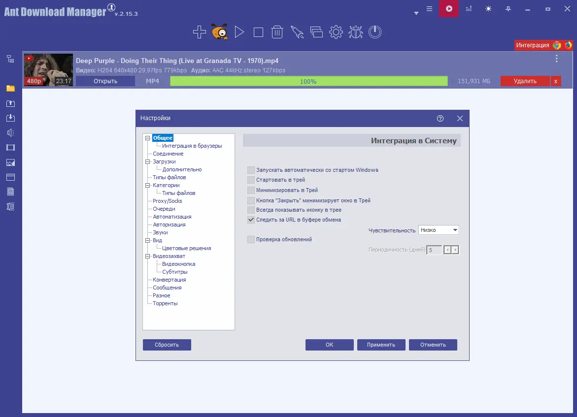 Ant Download Manager — это мощный менеджер загрузок с поддержкой многопоточной закачки, автоматического захвата видео и аудио с популярных сайтов, интеграцией в браузеры и возможностью работы с торрентами. Программа ускоряет скачивание, восстанавливает прерванные загрузки и поддерживает широкий спектр протоколов, включая HTTPS, FTPS, HLS и MPEG-DASH. Удобный интерфейс и функции планирования делают её незаменимым инструментом для активного пользователя интернета.