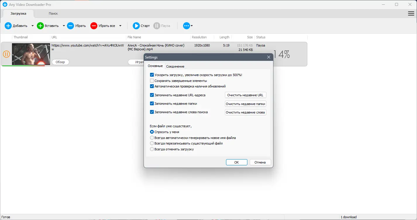 Any Video Downloader представляет собой универсальное решение для сохранения видеоматериалов из интернета на локальное устройство. Программа поддерживает широкий спектр сайтов, где размещают видео, и работает стабильно даже с высоким разрешением, включая 8K и 3D-контент. Благодаря встроенному ускорителю, загрузка проходит значительно быстрее стандартных методов. Пользователь может выбирать нужное качество и формат, а также приостанавливать процесс при необходимости. Интеграция с браузером позволяет перетаскивать ссылки напрямую, упрощая интерфейс взаимодействия.