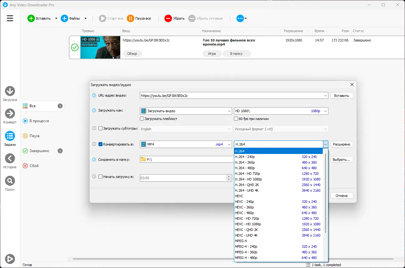 Any Video Downloader — это универсальное приложение для загрузки видеоматериалов с популярных онлайн-платформ, включая YouTube, Facebook и Dailymotion. Программа поддерживает высокие разрешения, включая 4K и 8K, а также позволяет конвертировать контент в различные форматы для просмотра на разных устройствах. Ускорение загрузок и встроенный плеер делают процесс удобным и эффективным.