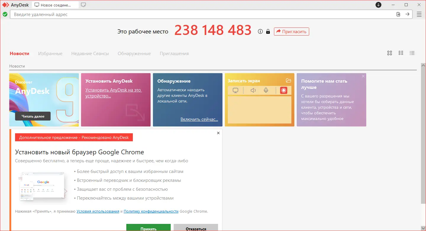 Использование AnyDesk не требует глубоких технических знаний. После запуска приложения на экране отображается уникальный идентификатор, который необходимо передать собеседнику для установления соединения. Для подключения достаточно ввести этот ID в поле на своём устройстве и подтвердить запрос. Доступ можно ограничить паролем или настроить через белый список доверенных устройств. В версии 9 реализована функция автооткрытия, позволяющая видеть доступные устройства в локальной сети без ручного ввода данных.